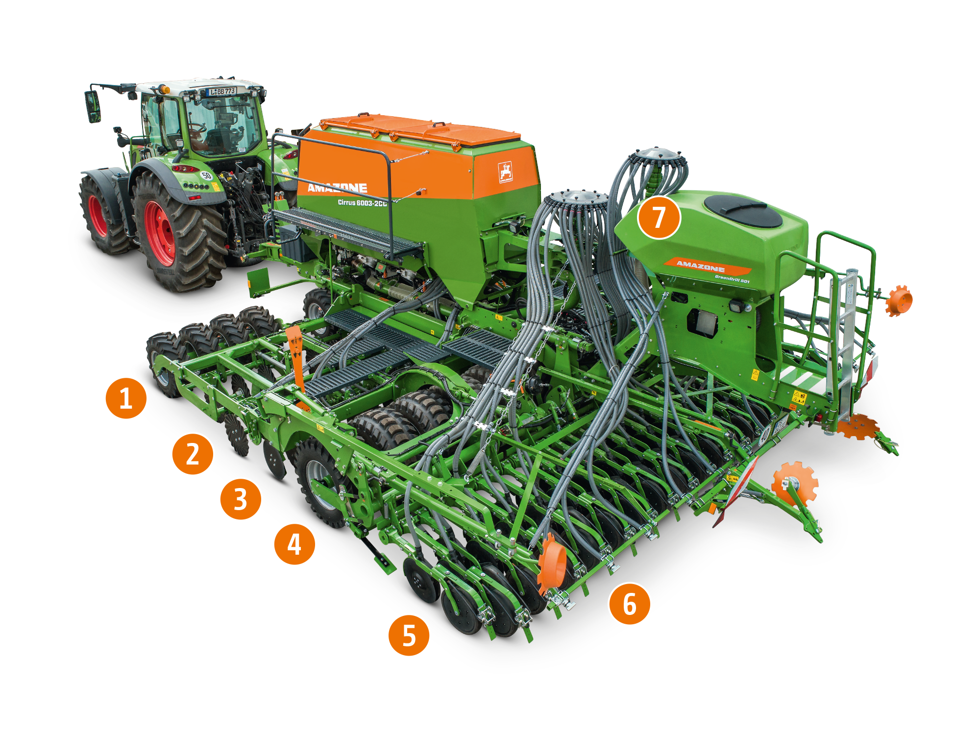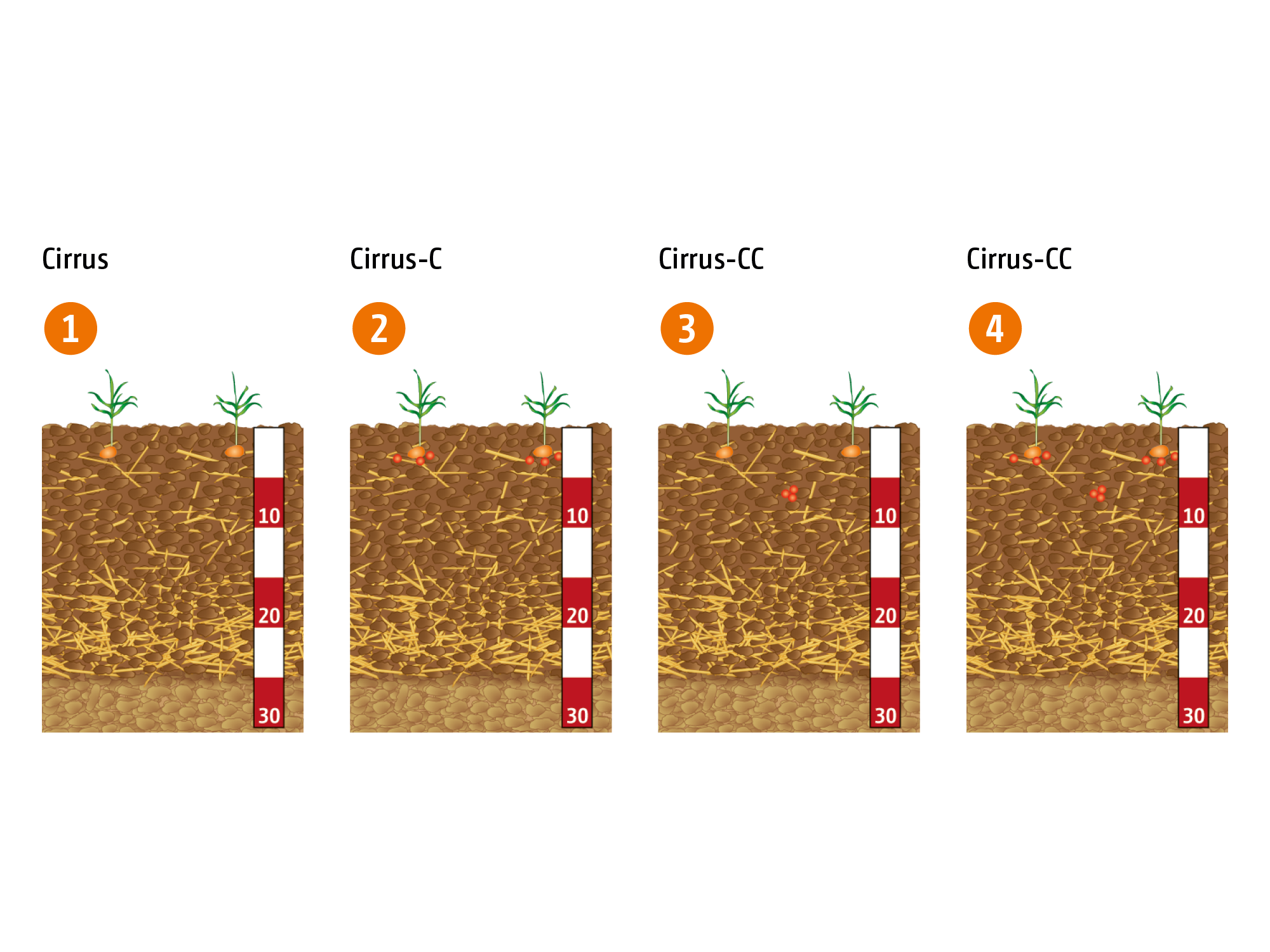 Durch die verschiedenen Kombinationsmöglichkeiten der Förderstrecken der Cirrus-CC ergeben sich für den Anwender eine Vielzahl von Möglichkeiten in der ackerbaulichen Nutzung. Dank einer abgesetzten Platzierung kann z. B. eine deutlich größere Menge Dünger zur Saat eingebracht werden.