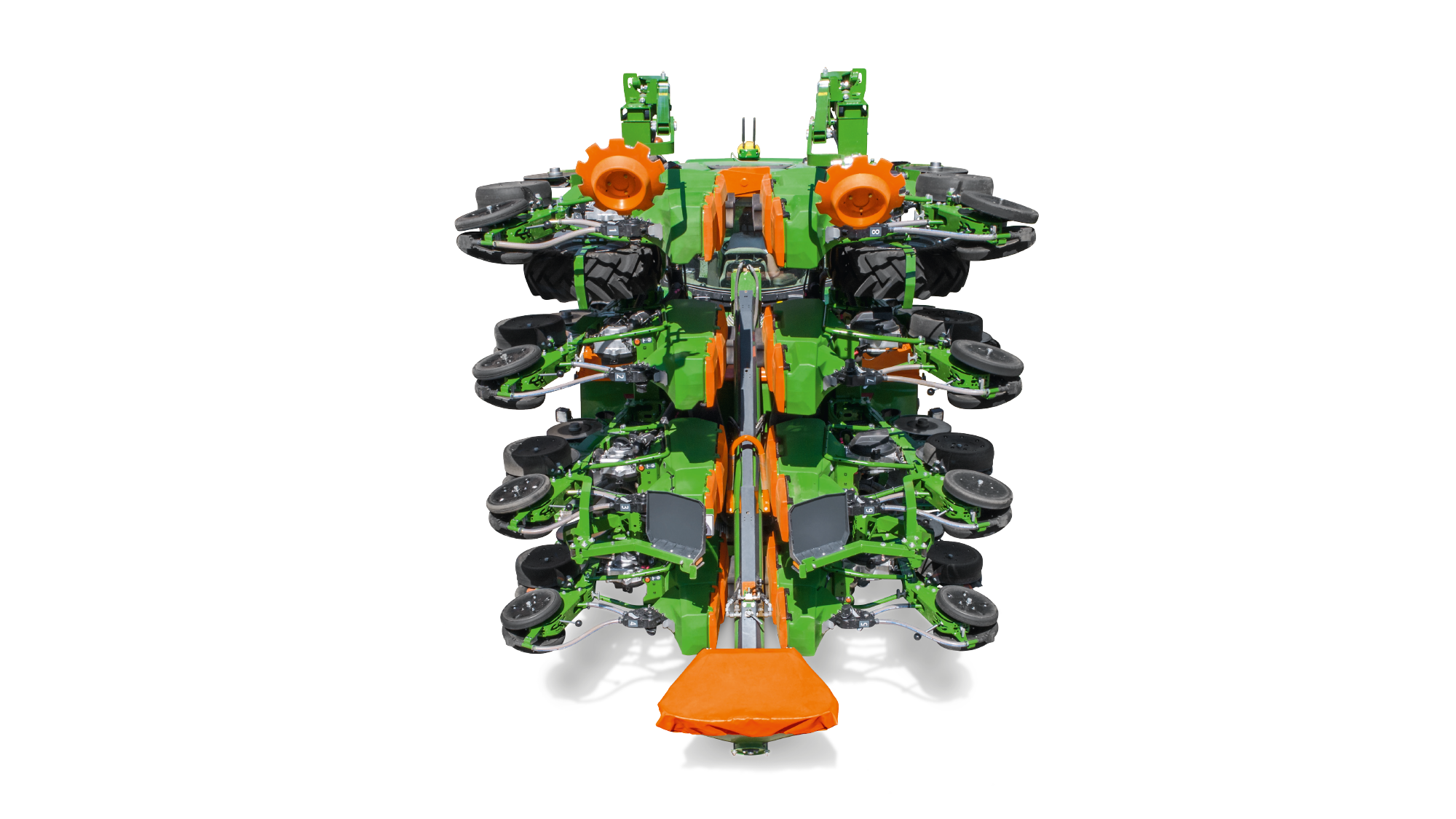 Ausgestattet mit einem klappbaren Rahmen ist die Precea 6000-2 besonders einfach und schnell von Arbeits- in Transportstellung gebracht. Per Knopfdruck klappt die schlagkräftige Maschine von einer Arbeitsbreite von 6 m auf eine überschaubare Transportbreite von 3 m zusammen.