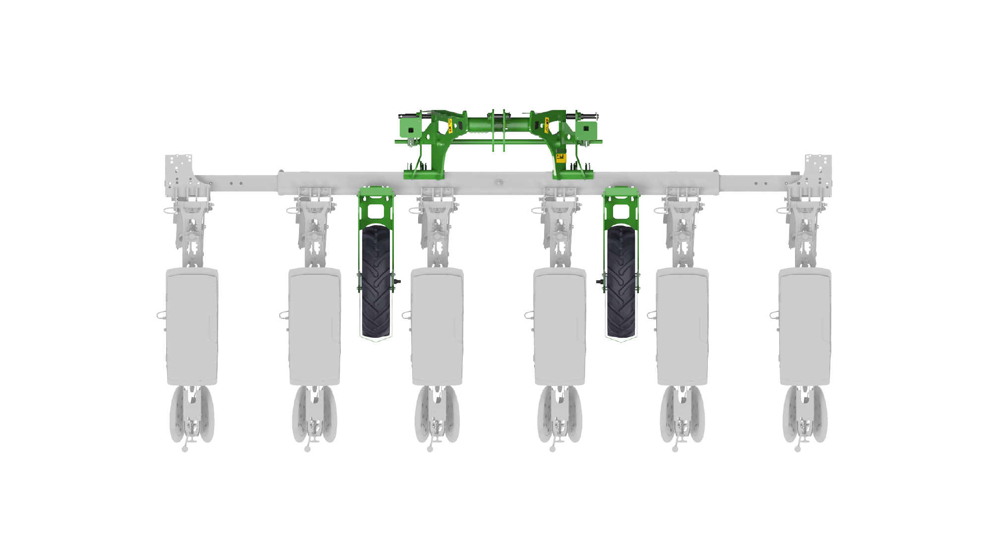 Mit gleich zwei Stützradvarianten erlaubt die Precea 4500 und 4500-2 eine Anbringung vor und zwischen den Säaggregaten. Während die Stützräder vor dem Anbaurahmen das volle Spektrum der Reihenabstände ermöglicht, überzeugt die sehr kompakte Variante zwischen den Säaggregaten mit einem deutlich geringeren Hubkraftbedarf.