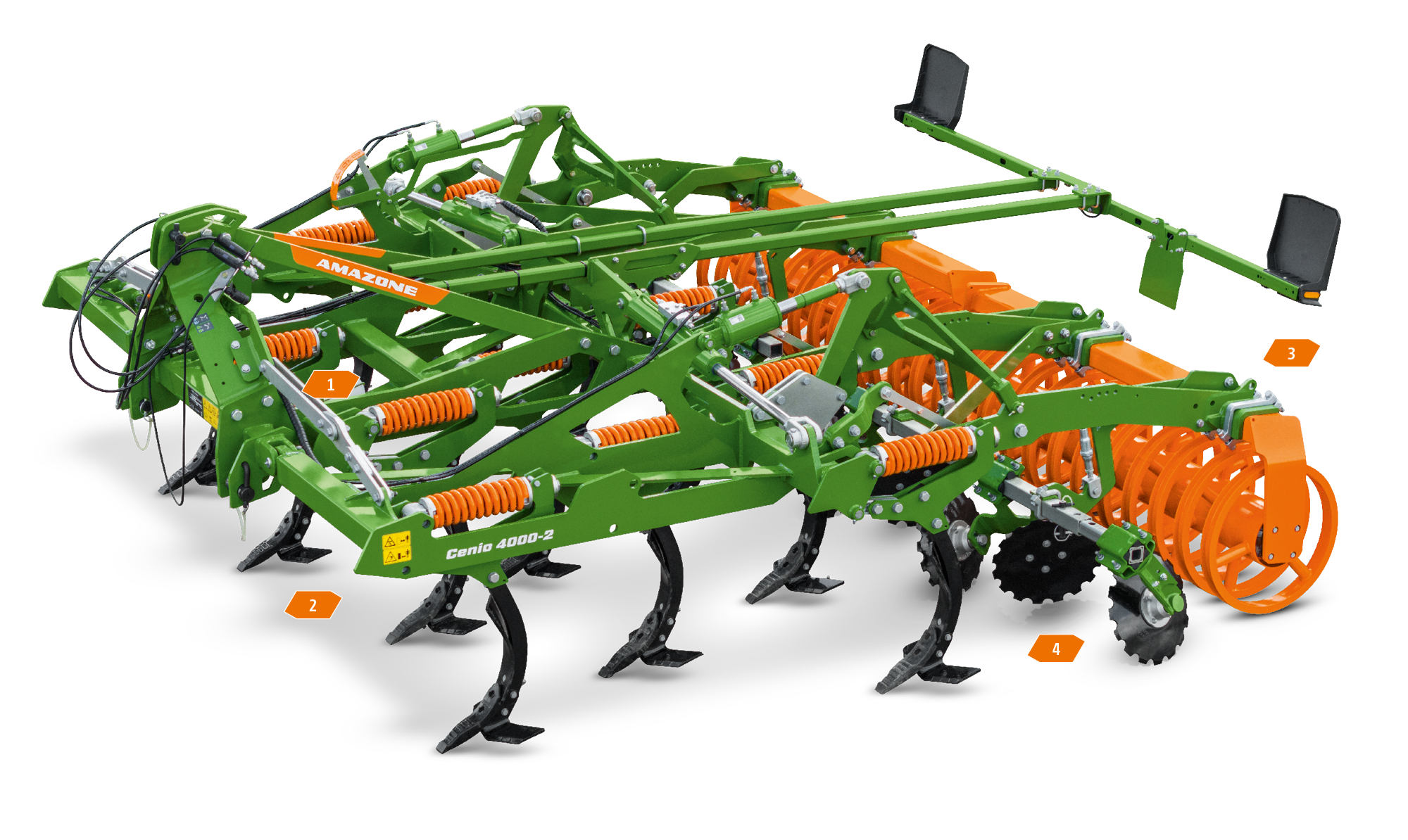 2. Zinkenschare mit C-Mix-Scharspitzen und manuell oder hydraulisch verstellbarer Arbeitstiefe von 5 bis 30 cm für flexibles Arbeiten