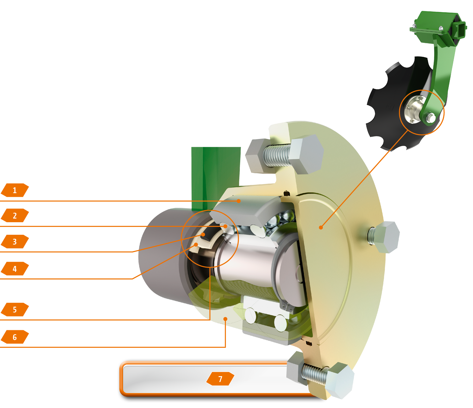 Die einzelnen Hohlscheiben sind über Gummifederelemente gelagert und verfügen damit über eine wartungsfreie Überlastsicherung.
