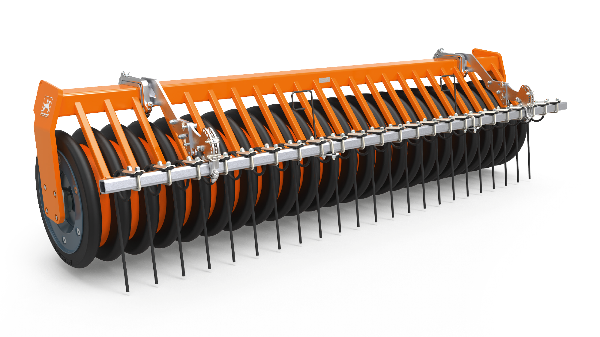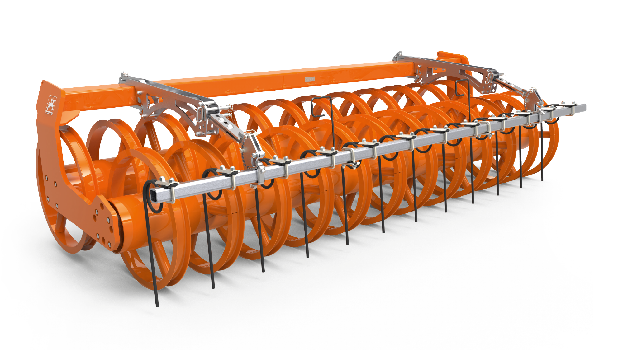 Erstklassige Einebnung des bearbeiteten Bodenhorizonts ist Grundvoraussetzung für eine gleichmäßige Rückverfestigung. Aus diesem Grund ist hinter den Zinkenreihen eine weitere Reihe mit Einebnungswerkzeugen angeordnet. Hier stehen Federstahlzustreicher oder gezackte Einebnungsscheiben zur Auswahl.