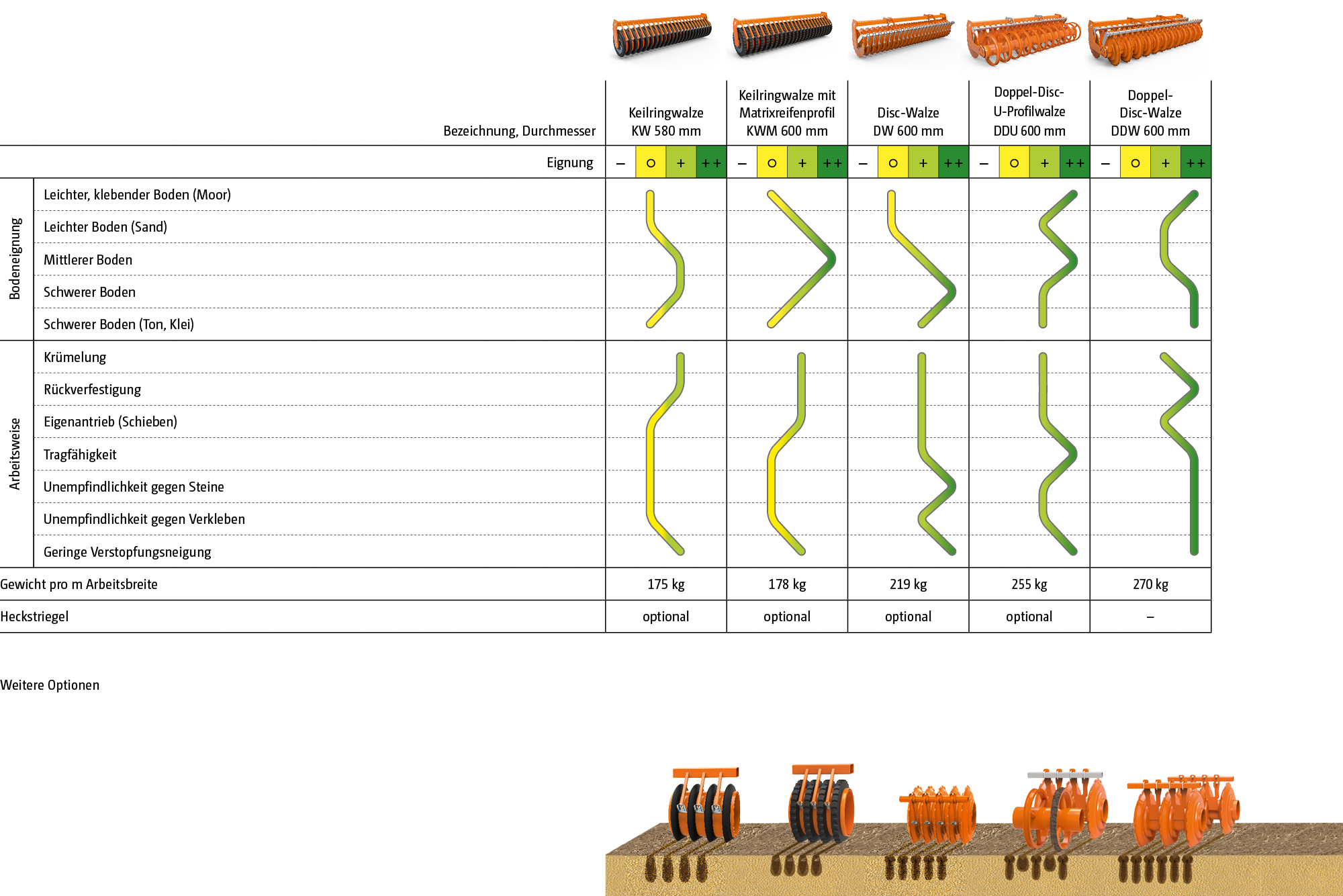 Für den Einsatz auf mittleren bis schweren Böden empfehlen sich nachlaufende Einebnungsscheiben.