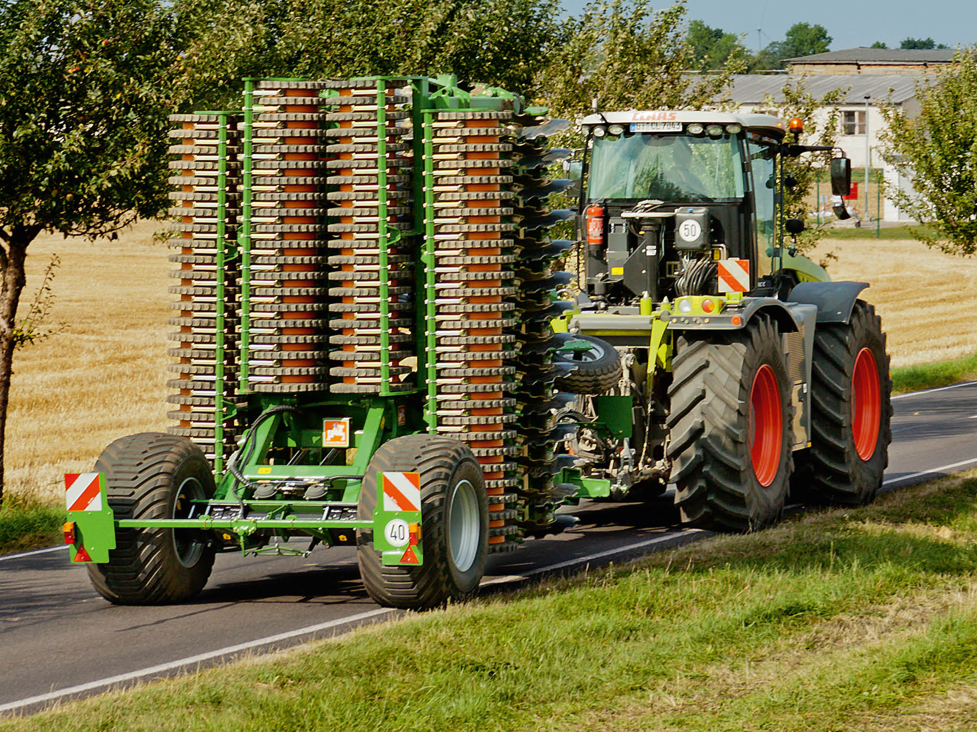 Unter besonders harten Bodenverhältnissen, z. B. auf dem Vorgewende, kann zudem die Arbeitsbreite vorübergehend auf 7 m reduziert werden, um so den Einzug zu verbessern.
