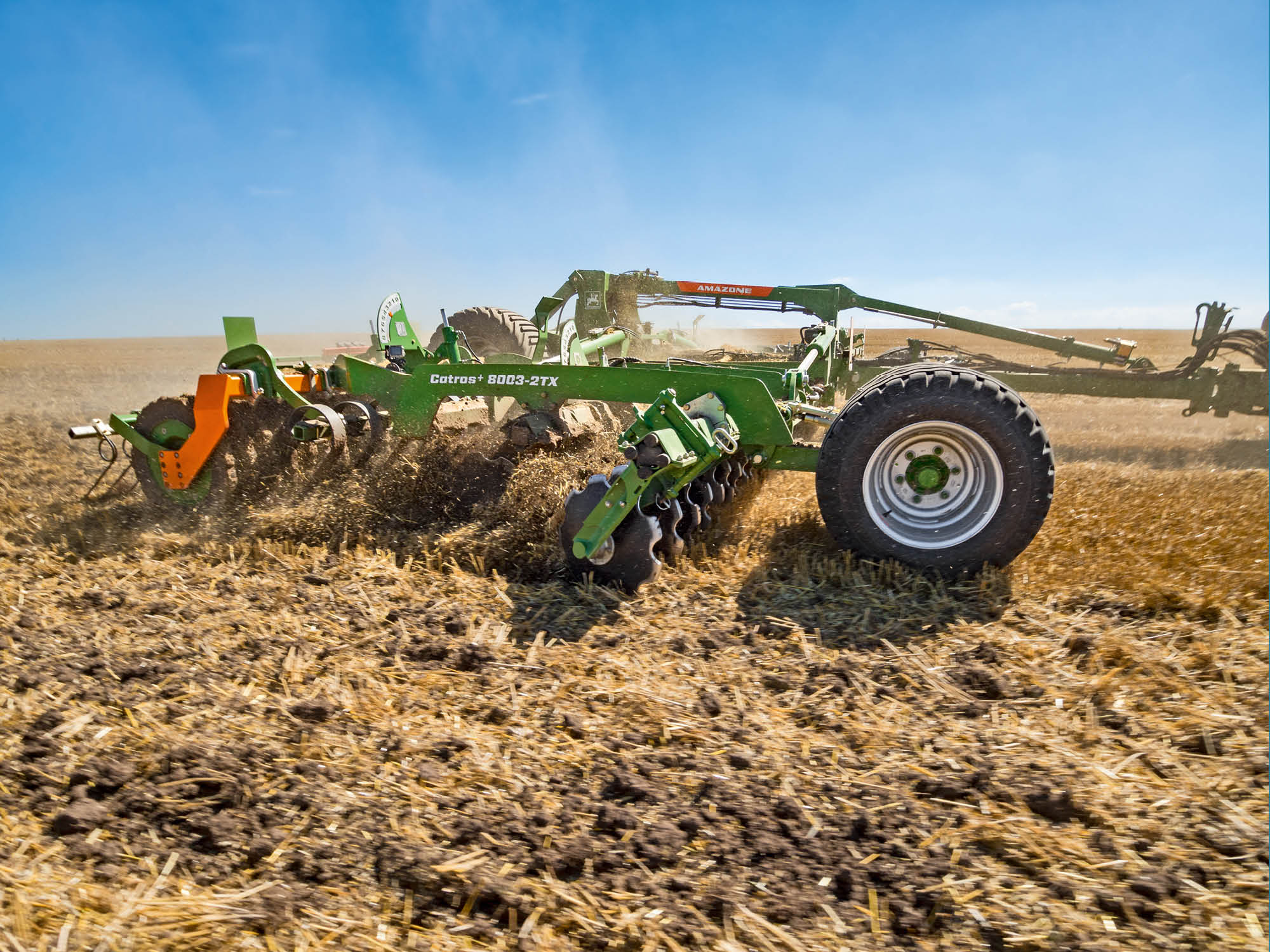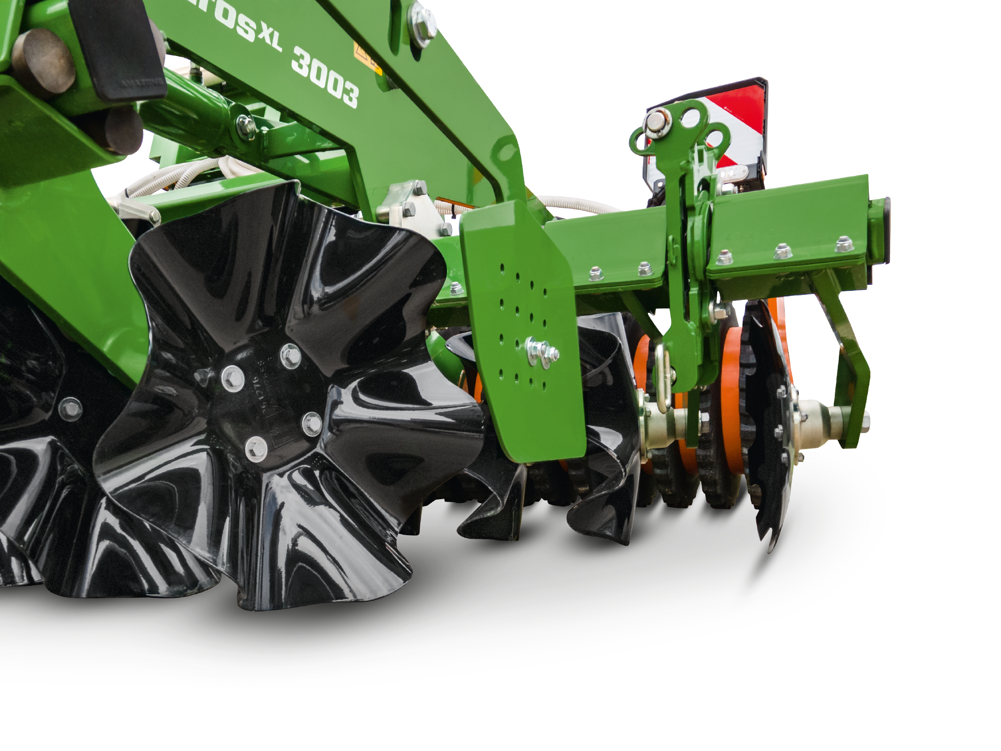 - Neben der unabhängigen Einstellung von Vorwerkzeug und Scheiben, bleibt bei einer Arbeitstiefenveränderung die Einstellung eines Heckstriegels auch unverändert
