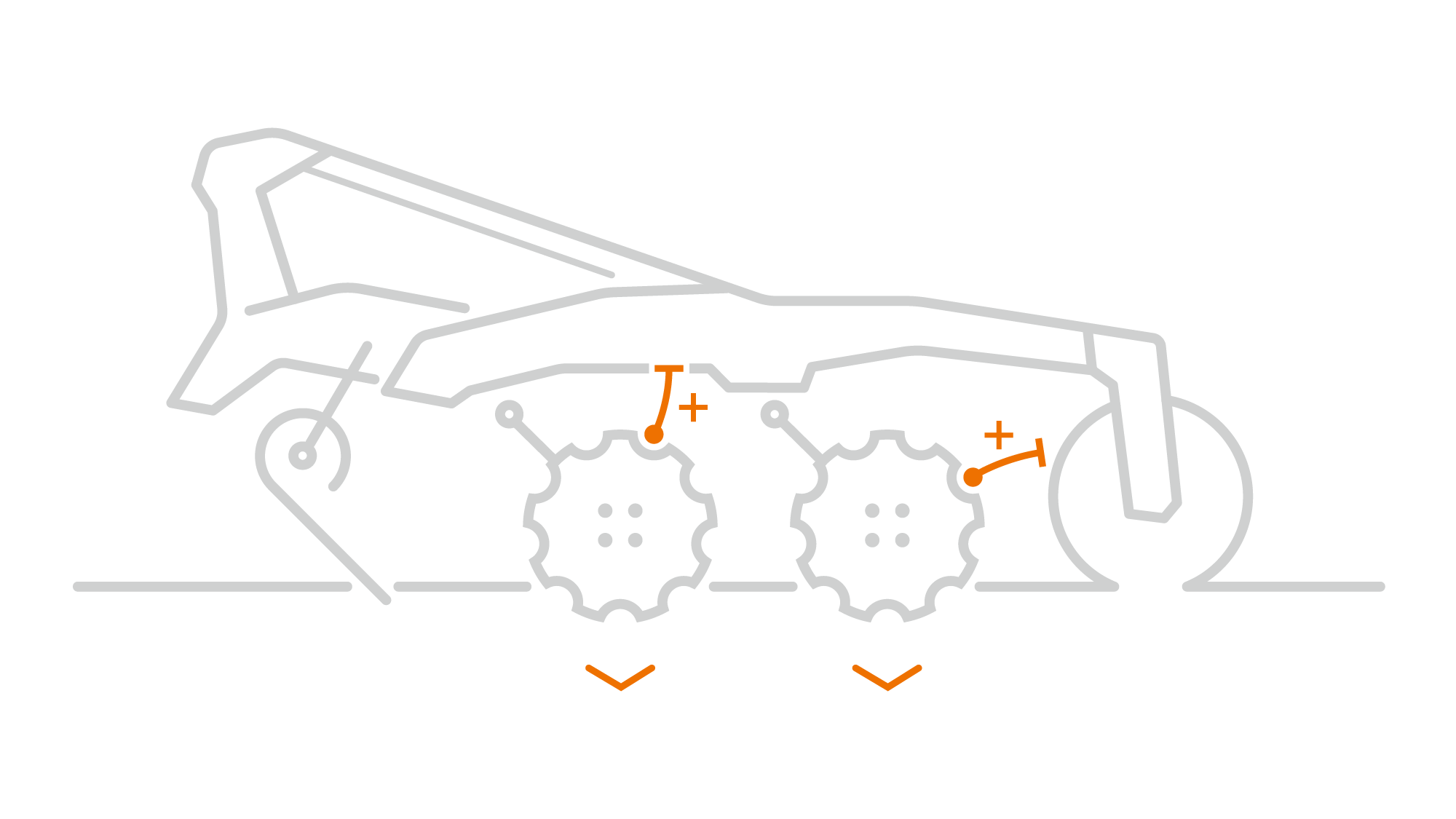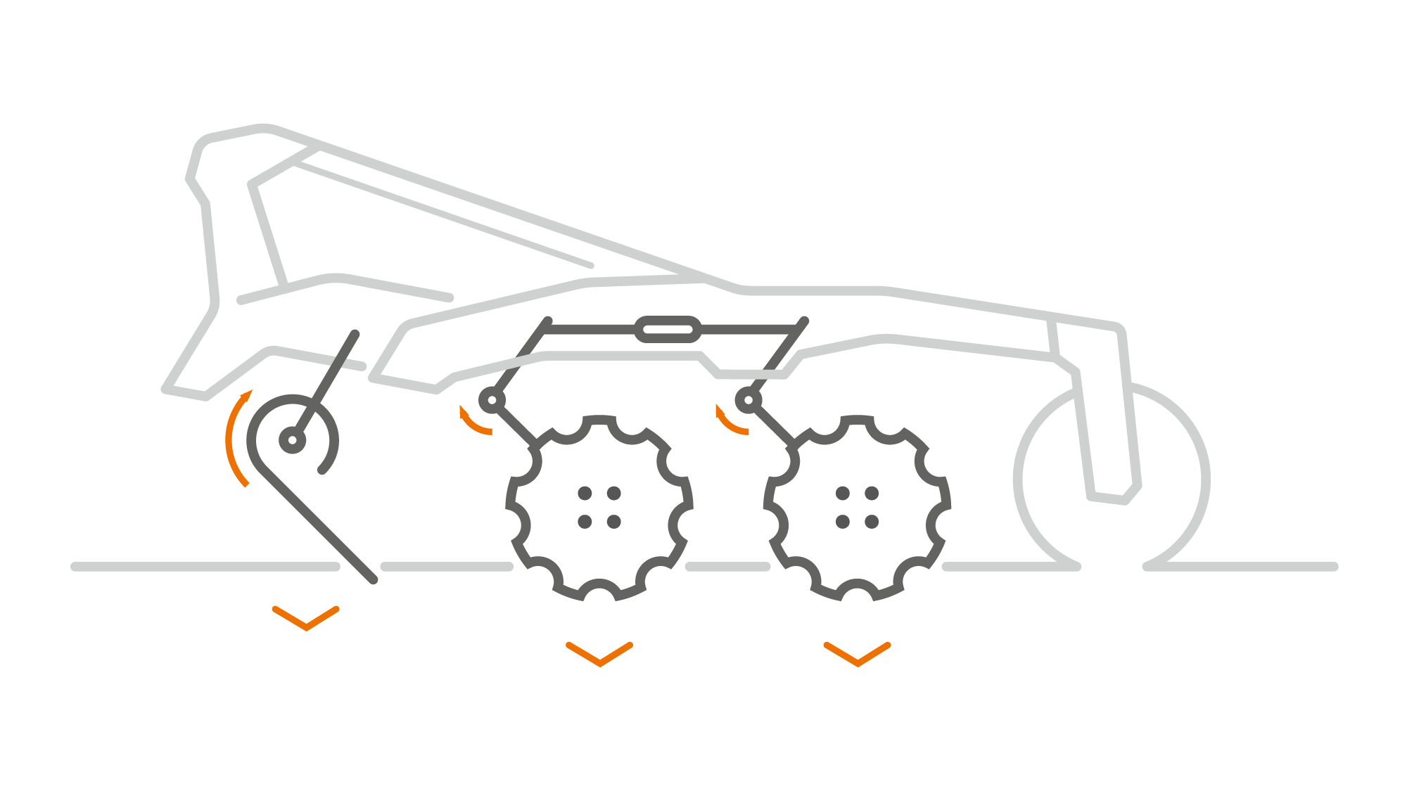 - Einmalige Ausrichtung des Hauptrahmens, da die Arbeitstiefe durch Verdrehen der Scheiben in den Boden verändert wird
