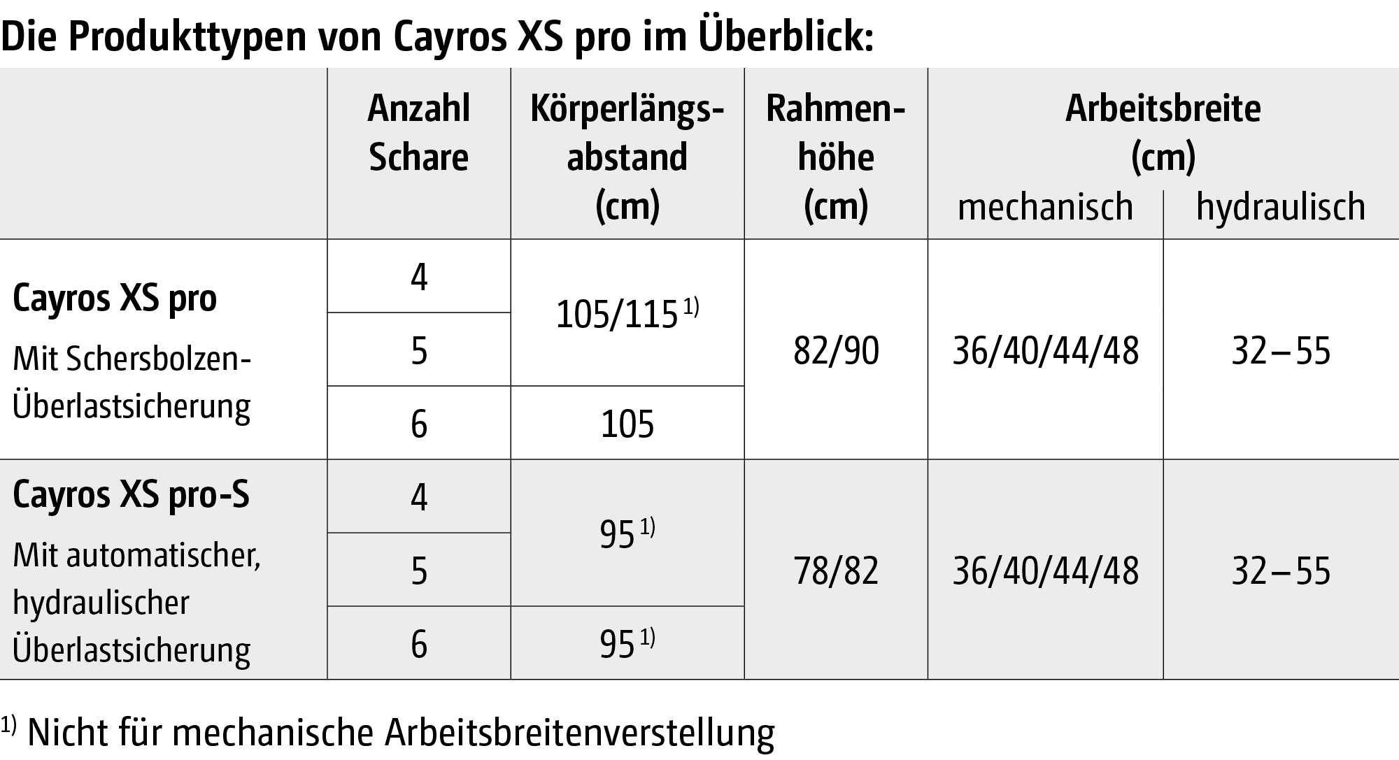 Bei Drehwerk und Rahmen entsprechend dimensioniert ist der Cayros XM ein Allroundtalent für Traktoren bis 103 kW/140 PS. Mit Rahmenhöhen bis 82 cm und einem Körperlängsabstand von bis zu 105 cm können auch große Mengen Ernterückstände problemlos eingearbeitet werden.