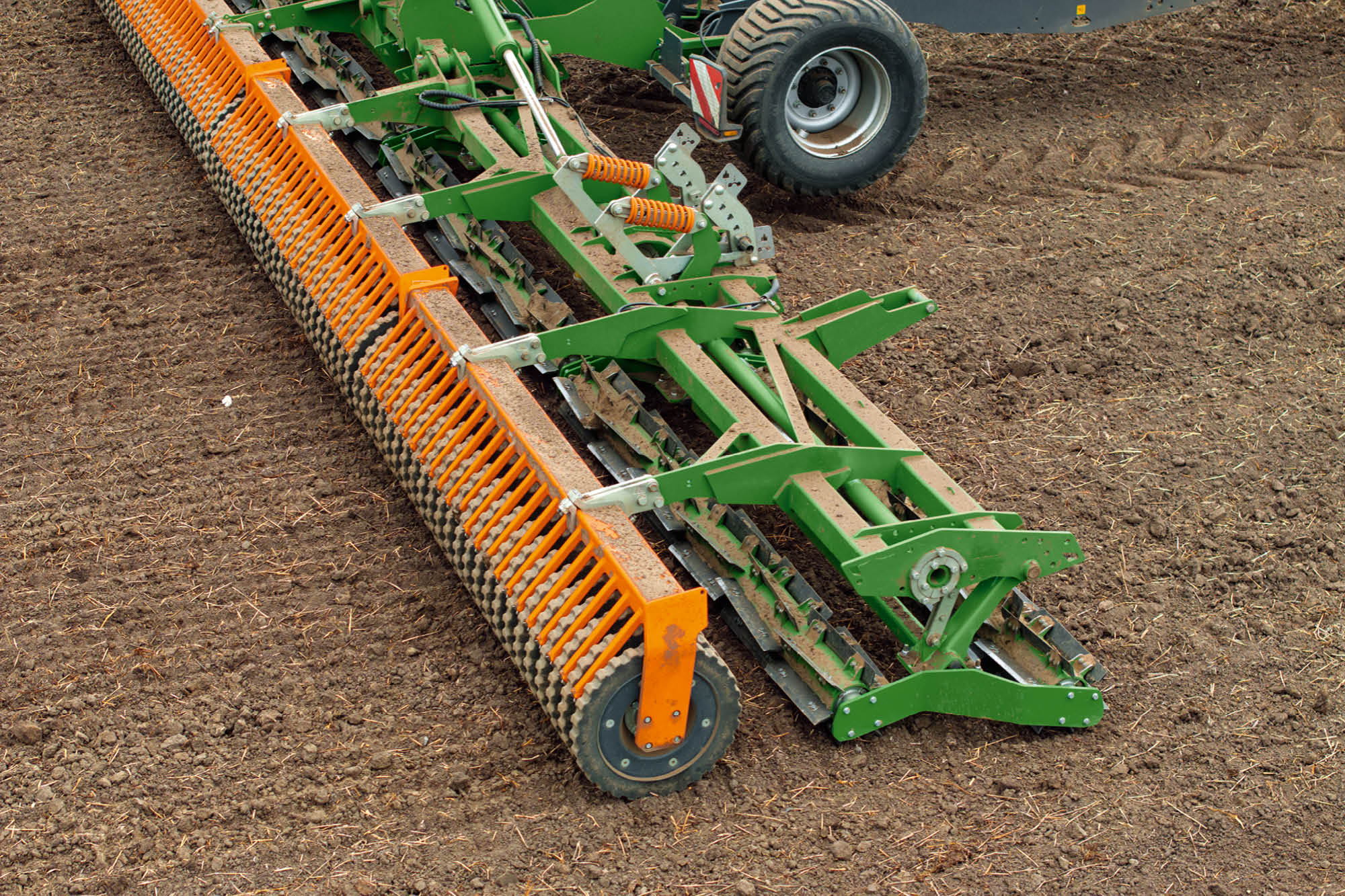 Durch die Schneidwalze wird Feinerde erzeugt und der Boden mit der Keilringwalze mit Matrixreifenprofil oder Disc-Walze rückverfestigt – das ideale Saatbett.
