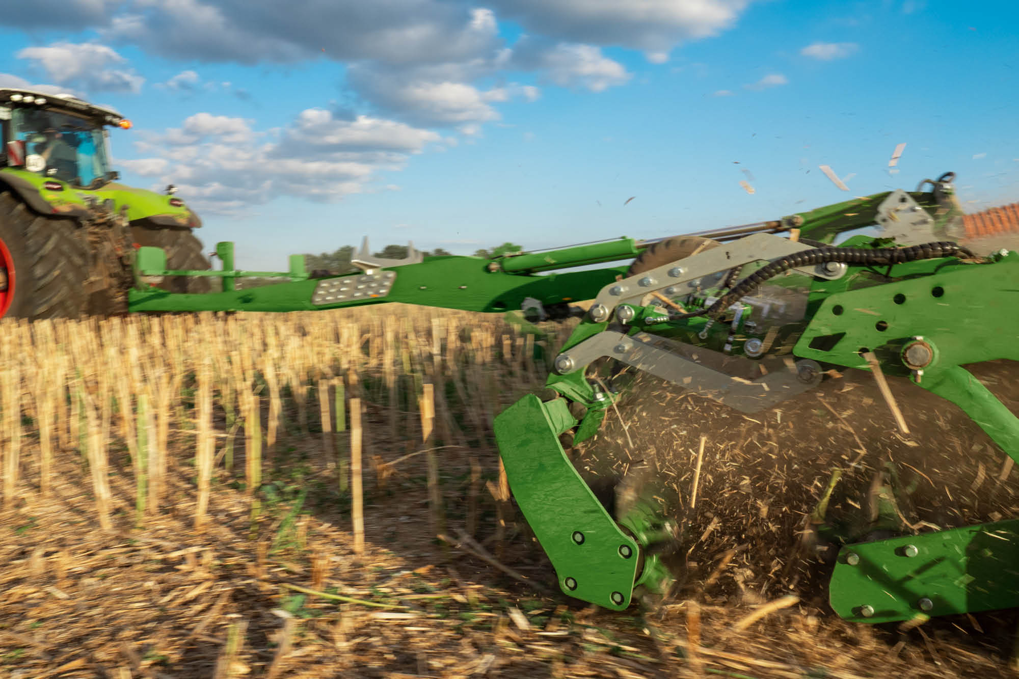 - Die oberflächliche Vermischung mit Feinerde erzeugt optimale Keimbedingungen für Ausfallgetreide und Unkräuter im falschen Saatbett. Nach dem Auflaufen des Ausfallgetreides oder Unkräutern, können diese noch effektiver bekämpft werden.
