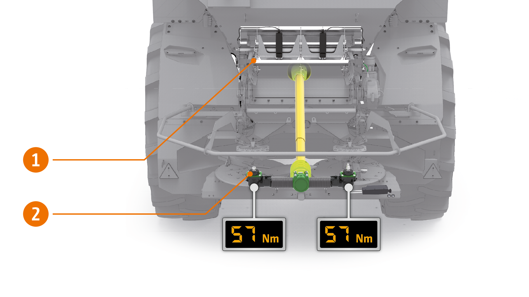 FlowControl verfügt über jeweils einen Sensor pro Streuscheibe, der die Drehmomente der einzelnen Streuscheiben ermittelt. Im Falle einer Abweichung zur Sollmenge passt FlowControl augenblicklich die Mengenschieberpositionen an.