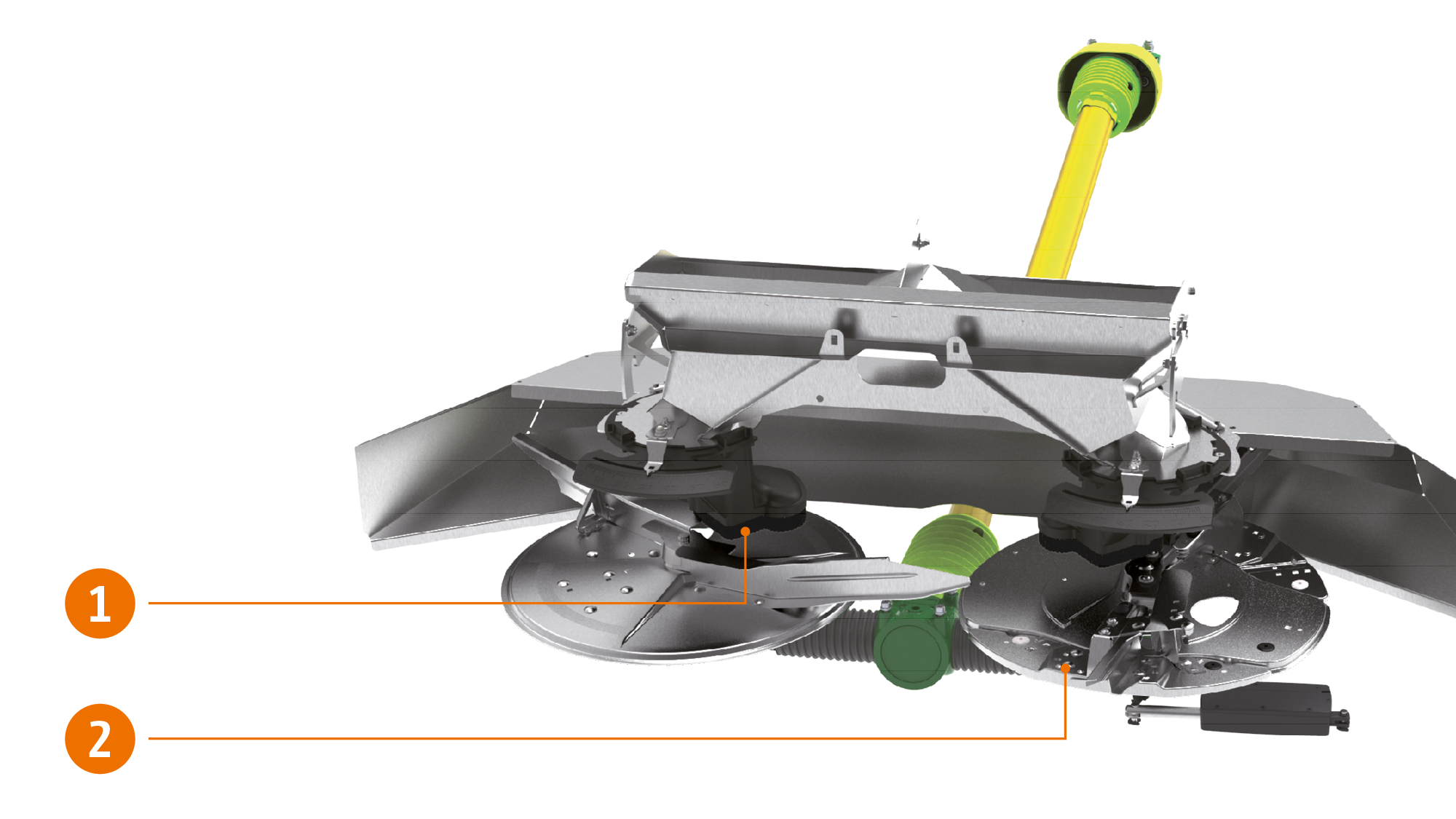 Ein Stellmotor verdreht die Einleitschaufel um ca. 10 °, sodass der Dünger beim Grenz- und Grabenstreuen über die kürzere Grenzstreuschaufel geführt wird. Durch die Kombination aus Drehzahl und kürzerer Schaufel wird der Dünger deutlich kürzer geworfen ohne diesen mechanisch zu beanspruchen.