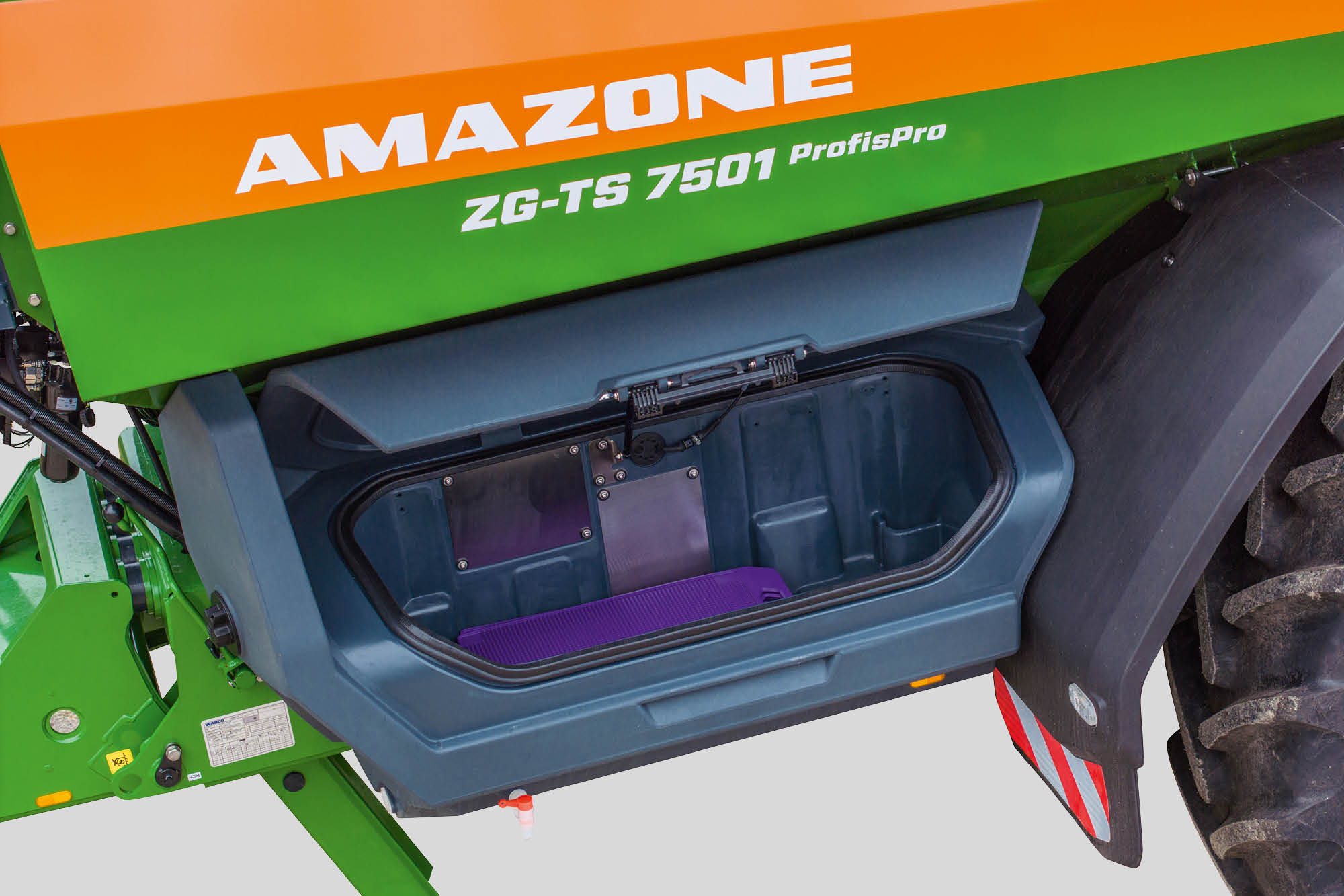 Mit Behältervolumen von 7.500 l und 10.000 l sind die ZG-TS Produkttypen besonders schlagkräftig und ideal für große Betriebsstrukturen, die besonderen Wert auf eine hohe Präzision legen. Dank ihrer Größe werden wertvolle Fahrt- und Ladezeiten gespart. Das Beladen kann dank der großen Behälteröffnung auch sehr komfortabel mit dem Lader oder aus dem Silo erfolgen. Mit einem mittig zentrierten Bandboden wird ein optimaler Gutfluss gewährleistet.