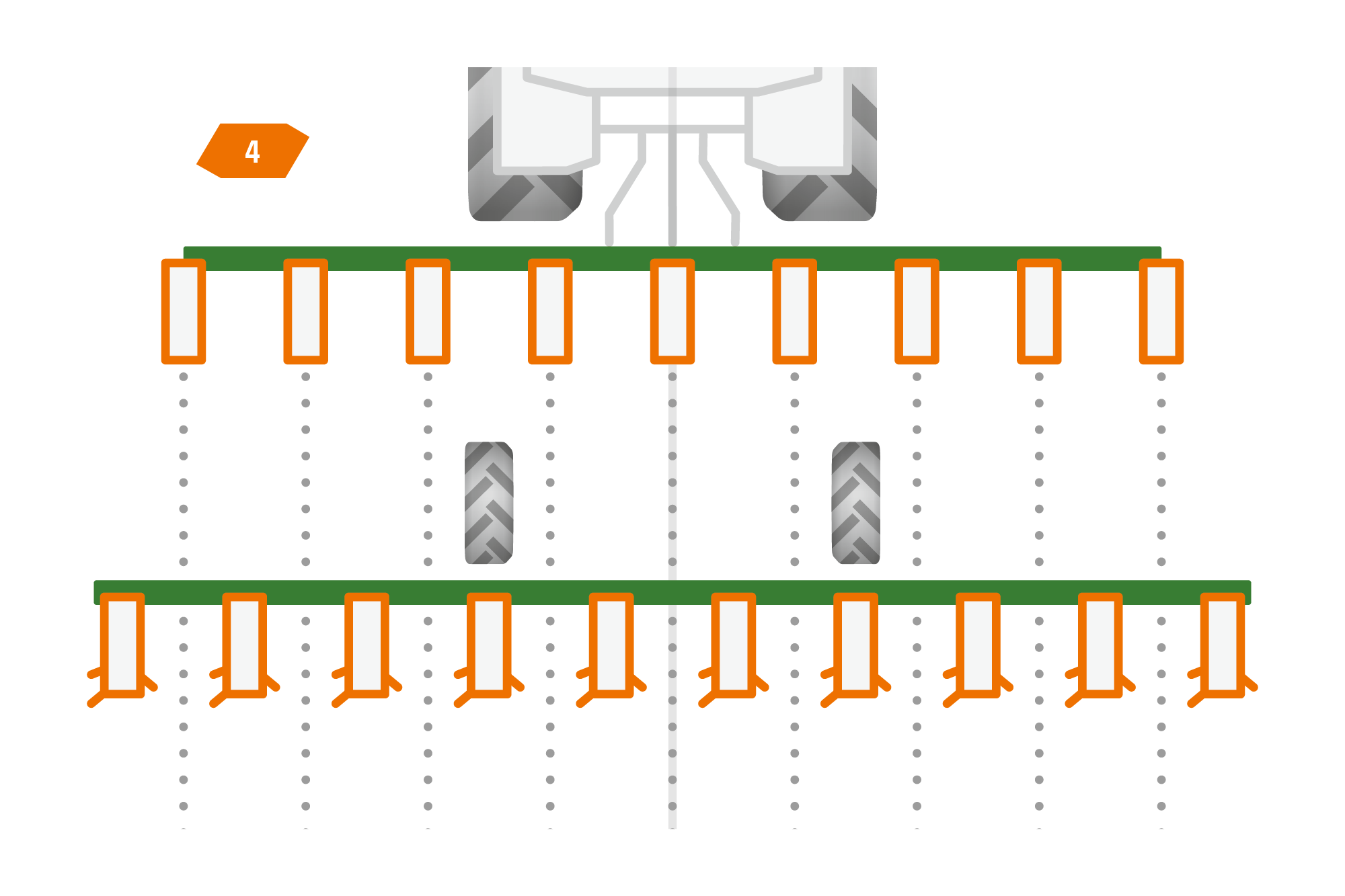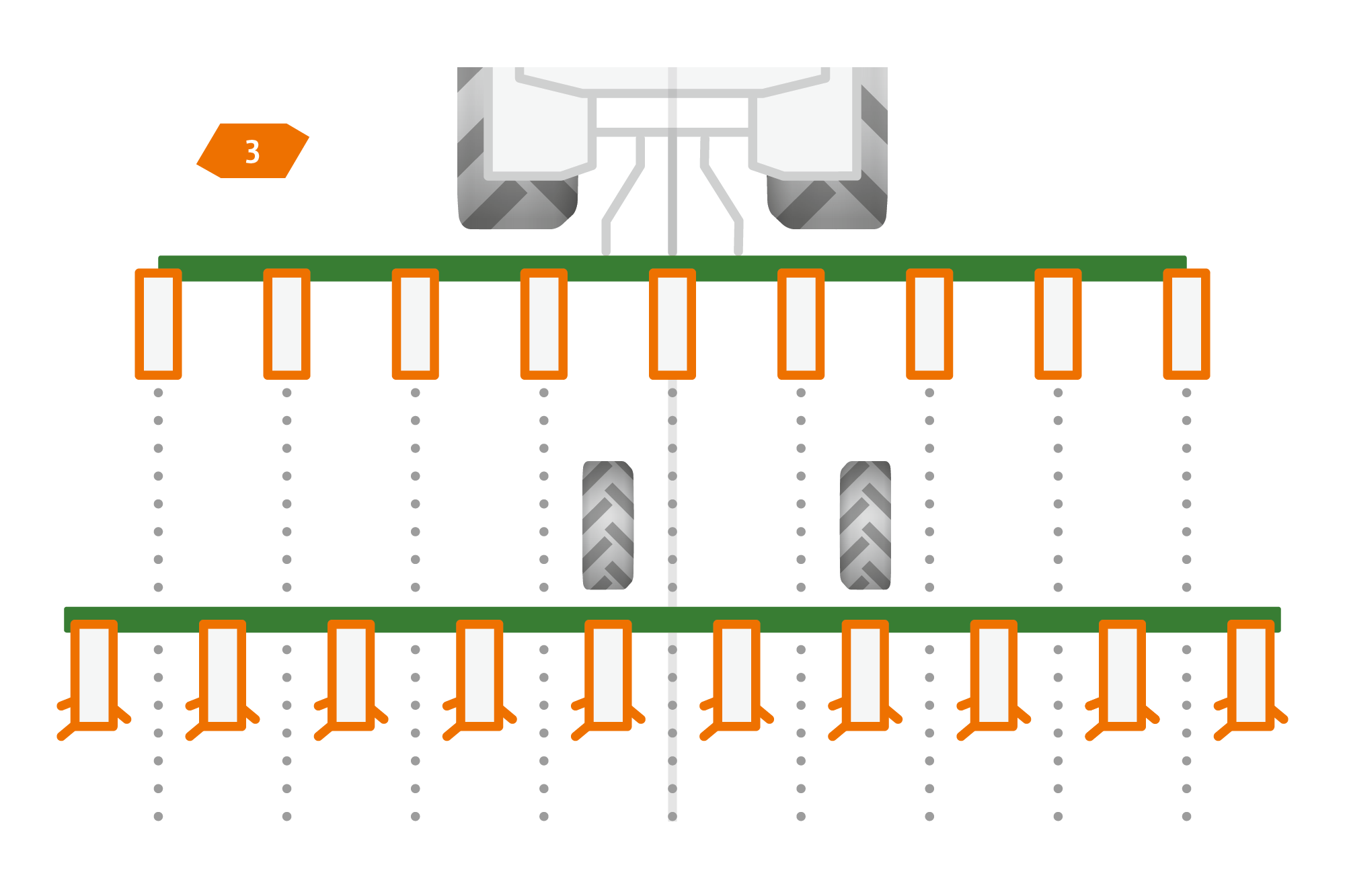 - Spurweite von 200 cm bei der Pflegefahrt ideal, symmetrischer Anbau