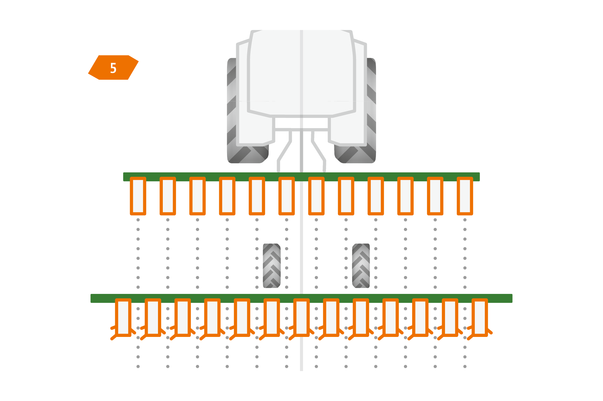 Hinweis: Die gezeigten Beispiele und passenden Hackenkonfigurationen sind für typische Profile der Normalbereifung von 710 mm und Pflegebereifung von 300 mm ausgelegt.