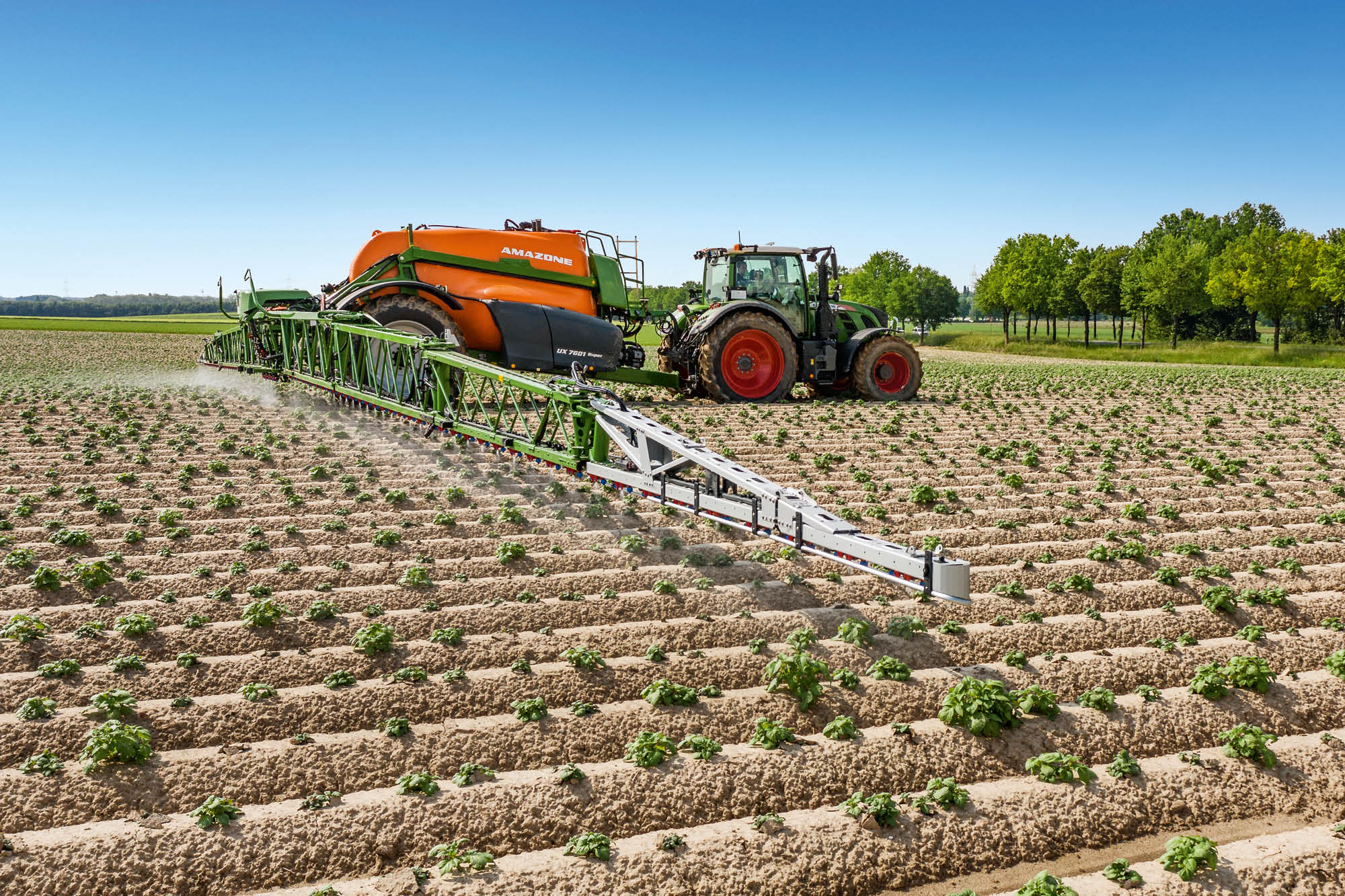 Superschmale Transportbreite von nur 2,40 m bei allen dreiteiligen Super-L2-Gestängen mit Arbeitsbreiten von 21, 24, 27 und 28 m. Sensationelle Transportbreite von nur 2,60 m bei allen vierteiligen Super-L2-Gestängen mit Arbeitsbreiten von 27, 28, 30, 32, 33, 36, 39 und 40 m (UX 6200: 2,80 m).