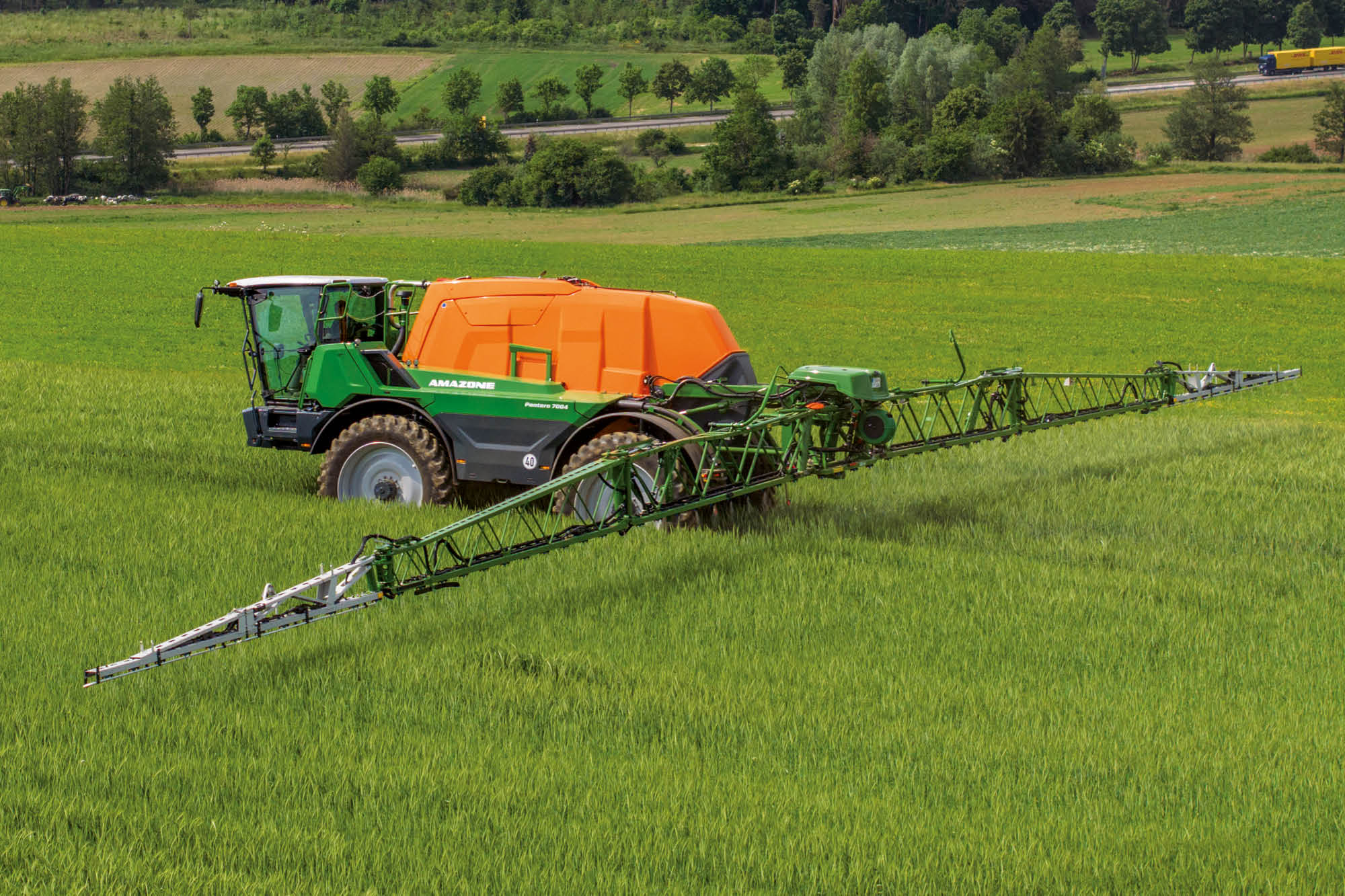 Die spezielle AMAZONE Profilbauweise im Gestänge sorgt für maximale Stabilität bei geringem Eigengewicht. Die Innenausleger der Super-L3-Gestänge sind aus Stahl gefertigt. Für ein minimales Gesamtgewicht bestehen die Außenausleger aus Aluminium. Der Vorteil in den leichten Außenauslegern, besteht darin, dass außen nur wenig Masse ruhig über dem Bestand geführt werden muss. Besonders bei großen Arbeitsbreiten ist die ruhige Gestängeführung an den Endauslegern besonders wichtig. Für maximale Stabilität bei geringem Eigengewicht sind die Profile des vorletzten Auslegers des 48 m breiten Super-L3-Gestänges aus Carbon gefertigt.