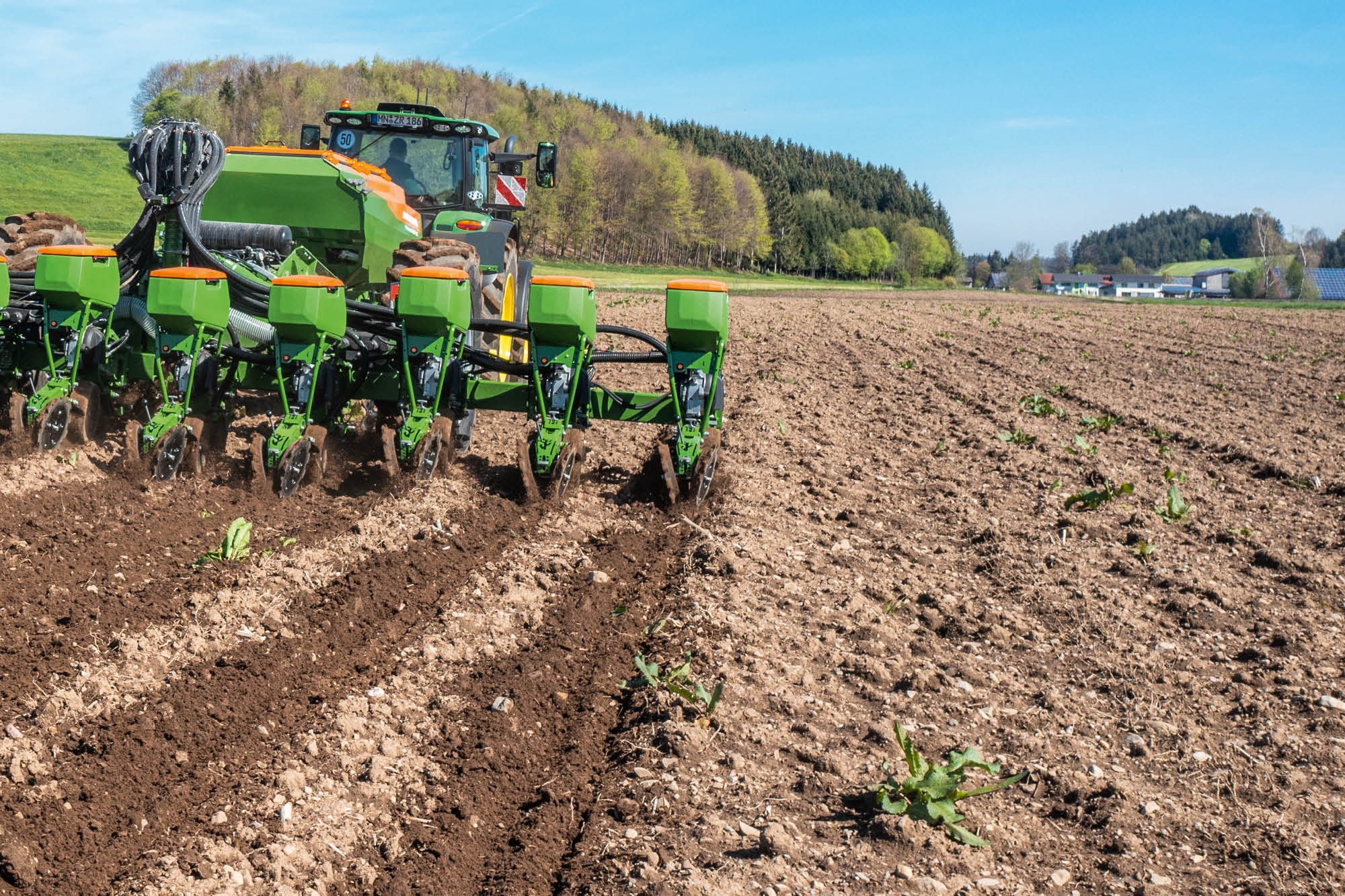 - Kurze Rüstzeiten, da der Schardruck am Düngerschar über das Säschar mit aufgebracht wird.