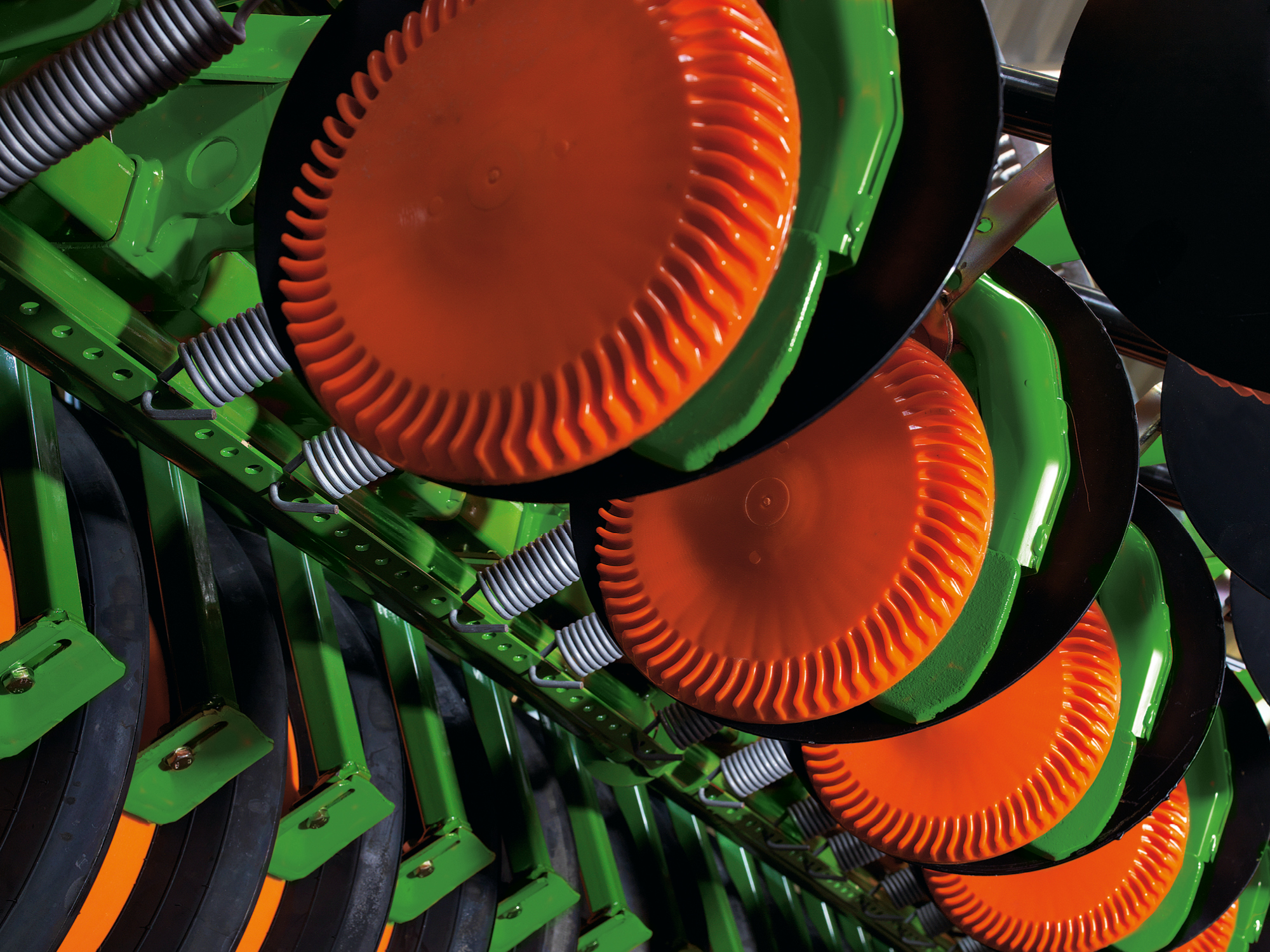 RoTeC-Schare sind wartungsfrei und arbeiten sehr zuverlässig auch bei großen Strohmengen und Pflanzenresten. Die Ausbildung der Säfurche und die optimale Saatgutführung in den Boden erfolgen auf einer Seite durch die Säscheibe und auf der anderen Seite durch einen Furchenformer. Die Tiefenführungsscheibe Control 10 oder die Tiefenführungsrolle Control 25 verhindern das Anhaften von Erde an der Säscheibe und sorgen zuverlässig für die exakte Einhaltung der eingestellten Sätiefe.