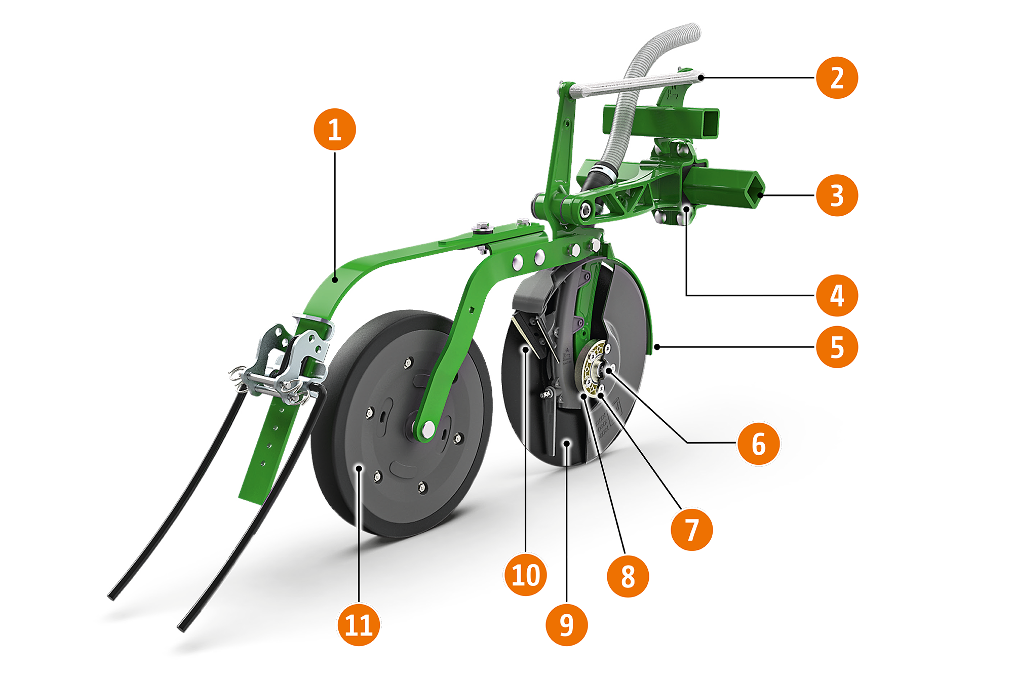 5. Saatgutführungsrohr bis zum Furchenformer für eine gleichmäßige Saatgutablage.