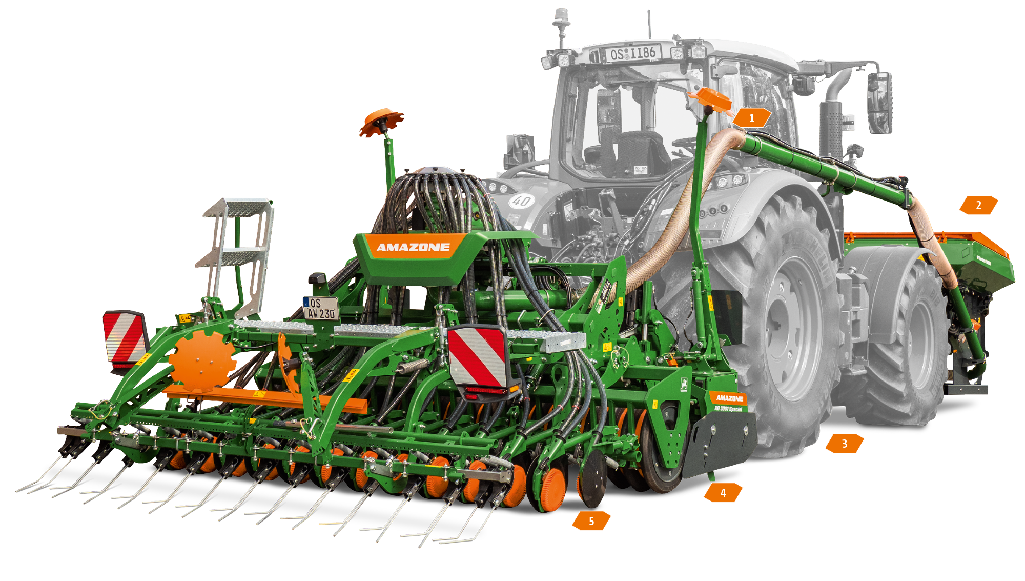 Bodenschonung – das Gewicht der Maschine wird durch die Aufteilung in eine Fronteinheit und eine Heckeinheit gleichmäßiger auf die Achsen des Traktors verteilt. Die Bodenverdichtung wird so minimiert!