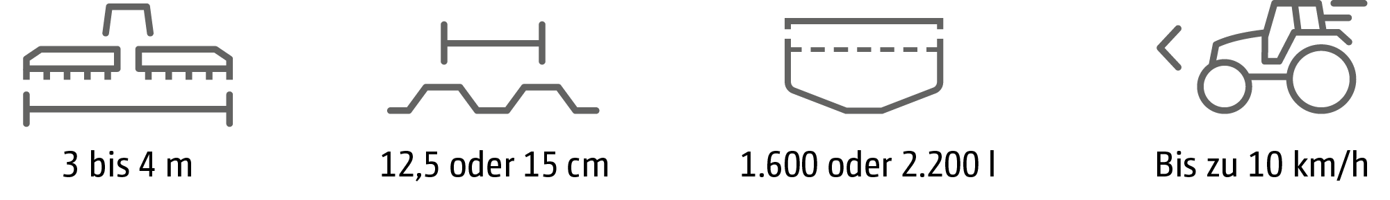 - Geringes Maschinengewicht, gleichmäßig auf die Achsen des Traktors verteilt für optimale Bodenschonung