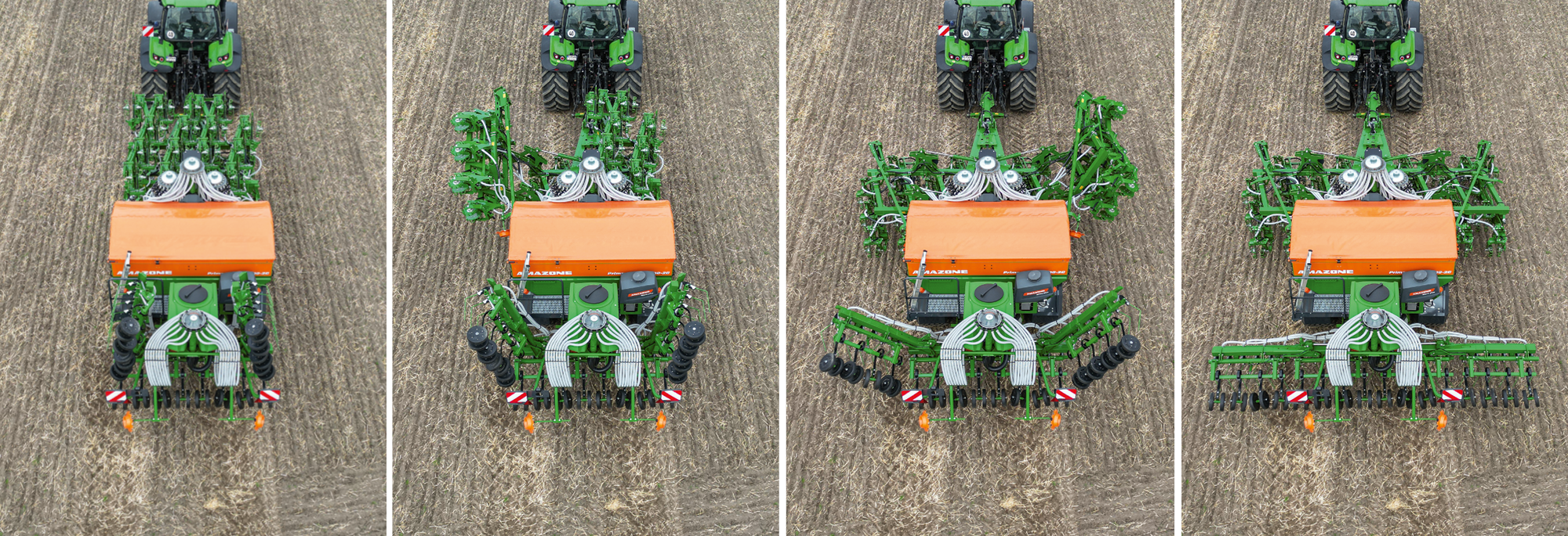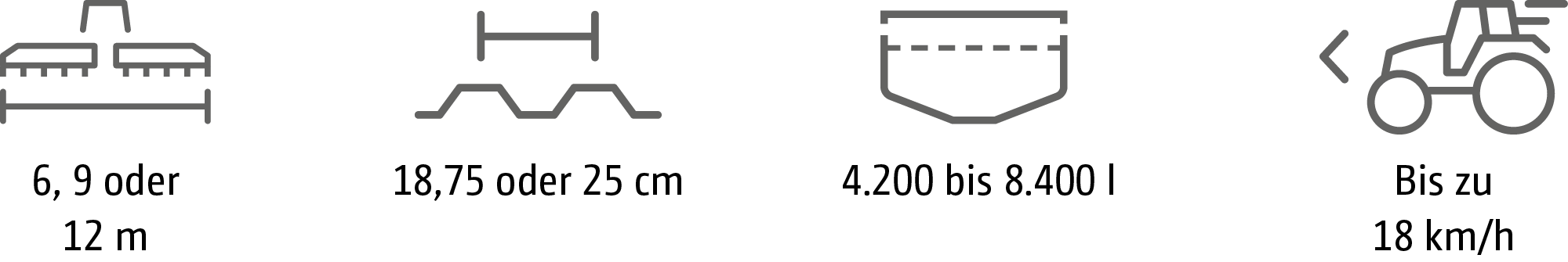 - Große Flexibilität in der Saat unterschiedlicher Kulturen mit gleichzeitiger Ausbringung von Dünger die Säfurche oder auf die Bodenoberfläche