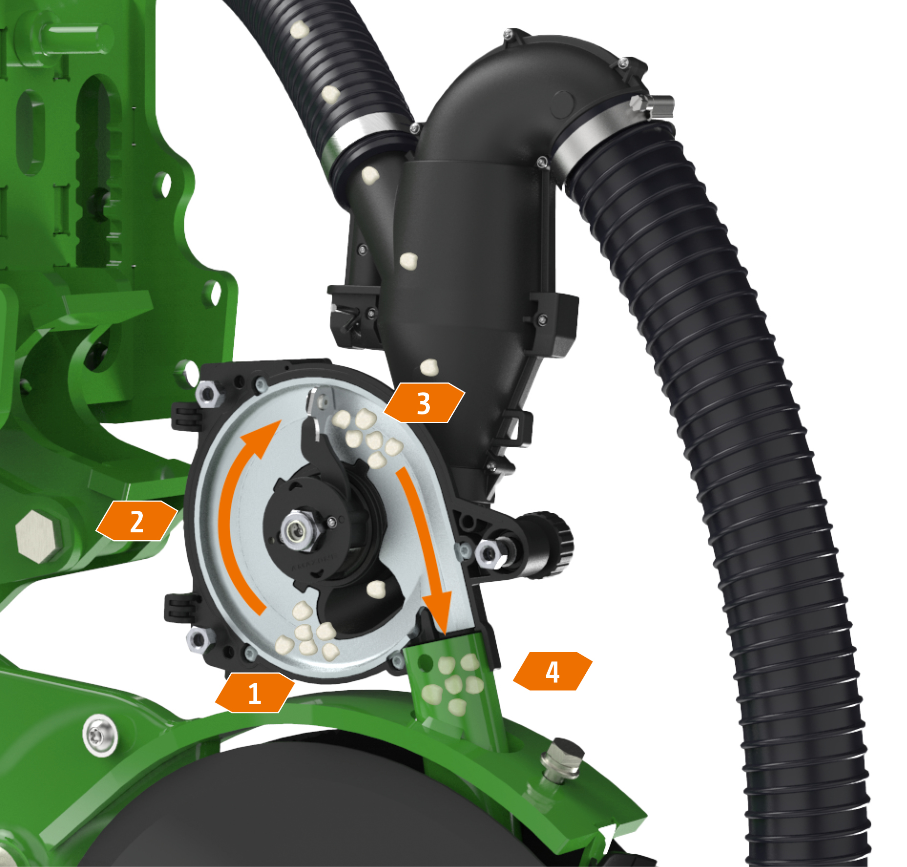 - Efficient fertiliser supply: precise metering and pinpoint delivery of the fertiliser to each seed prevents over-application.