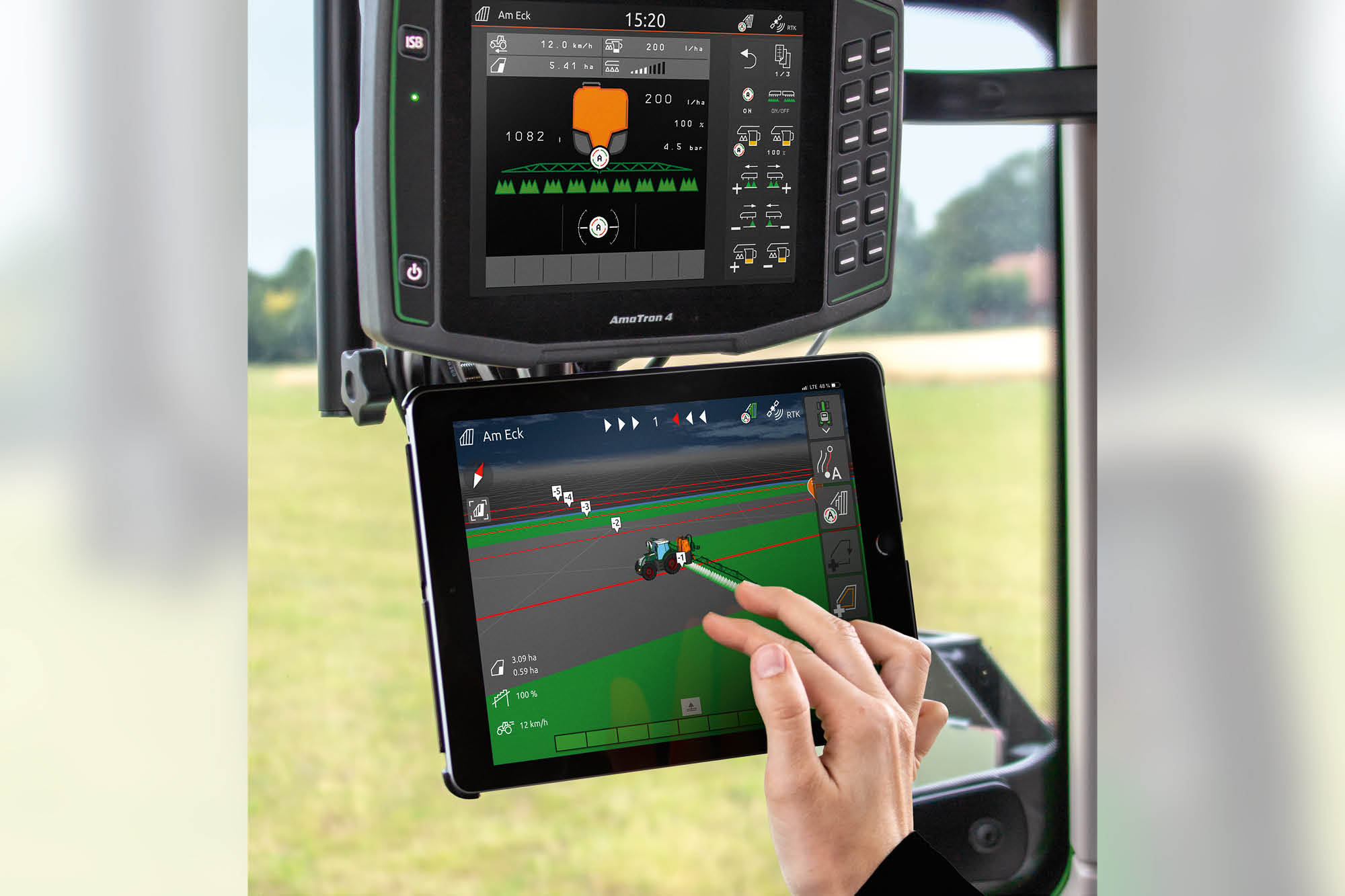If the operating terminal features Section Control, such as, for example, GPS-Switch part-width section control from AMAZONE, the switching of the part-width sections can be carried out completely automatically and in relation to the GPS position. Once a field has been created, and then in automatic mode, the driver can concentrate fully on the operation of the towing vehicle, since the part-width sections are switched automatically in wedge shaped fields and on headlands.