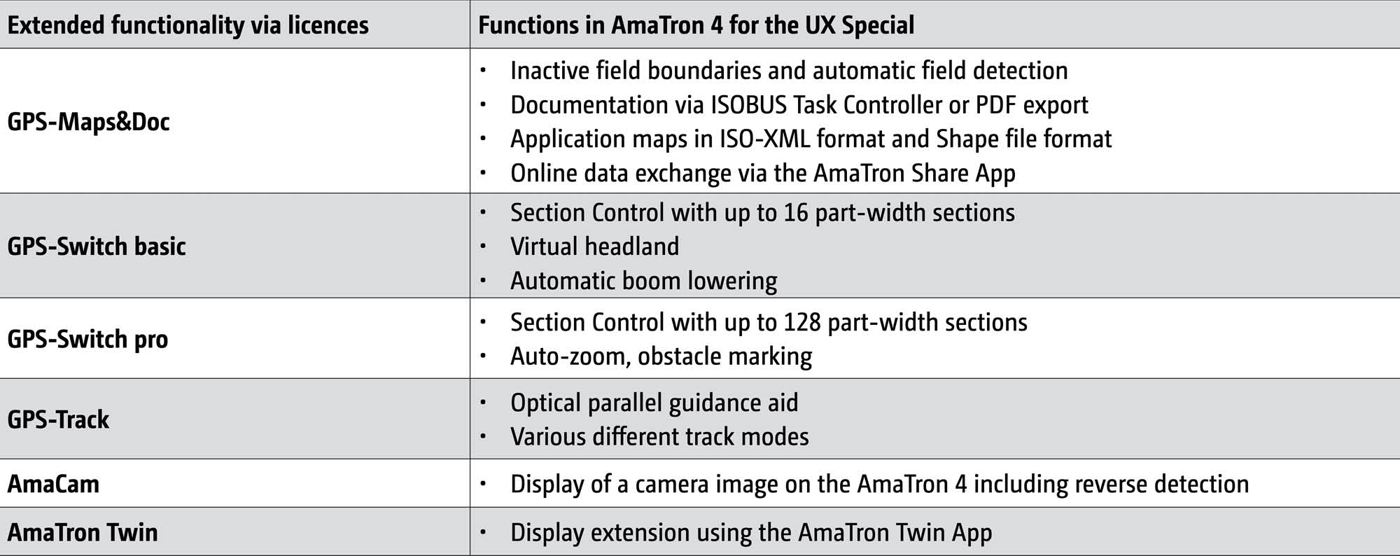 With the GPS-Maps&Doc licence, the AmaTron 4 can gather and document both machine data and georeferenced data via Task Controller (TC). Part-area, site-specific operation via application maps in either Shape file or ISO-XML format is also possible.