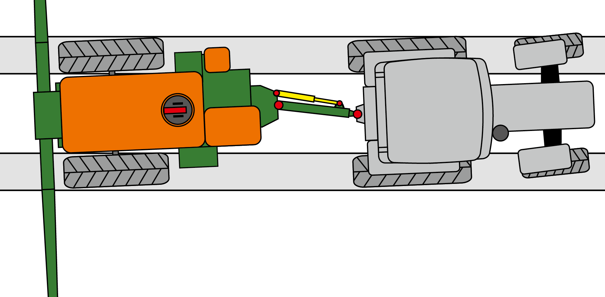 SelfTrail and UniTrail steering systems react directly to the steering action of the tractor. The following sprayer axle oversteers by a little when coming in into the turn. The tracking quality is completely independent from forward speed.