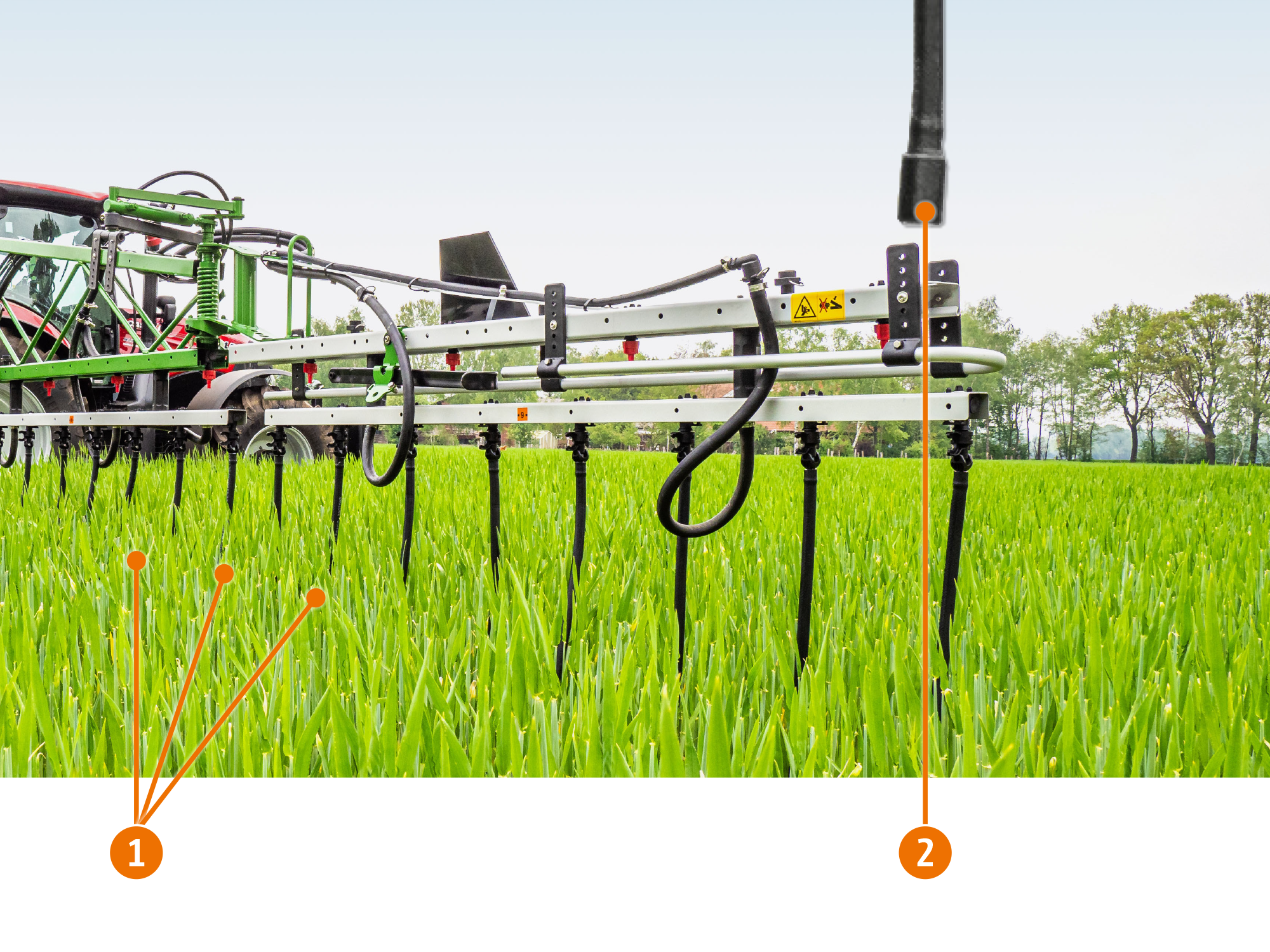 The split spray pattern ensures a more even deposit on the front and back of the plant and makes sense maybe, for example, in ear treatment.