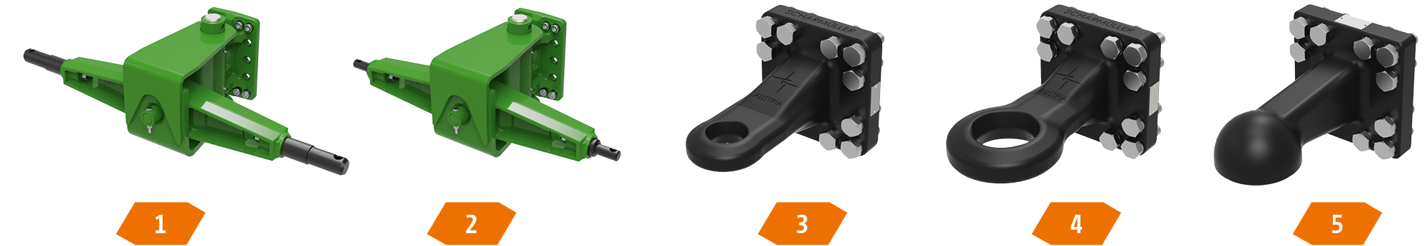 Extensive mounting and drawbar options are available for all compact disc harrows and any tractor. The flange plate allows the easy and quick mounting of any of the linkage options. In addition, the category of the lower linkage can be quickly changed. Only the linkage pins are interchanged for this purpose. As a result, the appropriate linkage can be selected for any tractor, no matter whether Cat. 2, 3, 3N or 4N lower link cross shafts, various towing eyes or the K80 ball coupling are used.