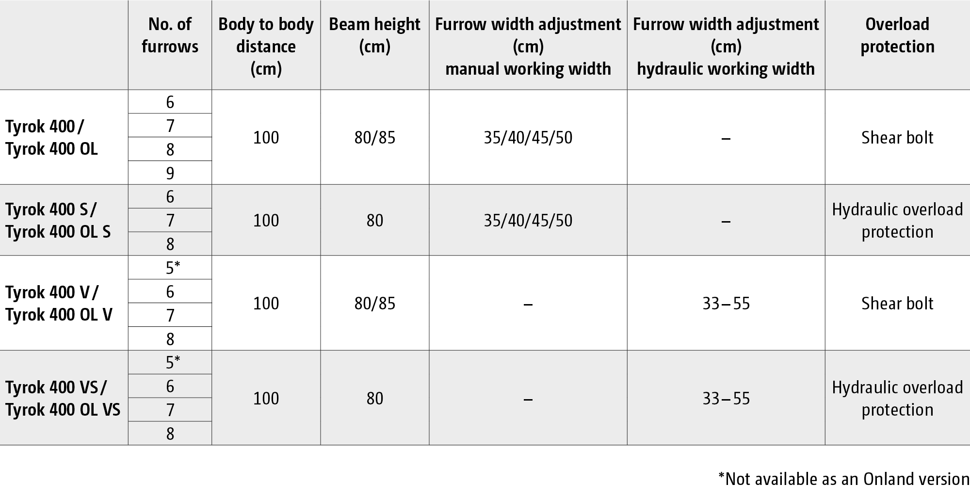 Overview of the Tyrok range: