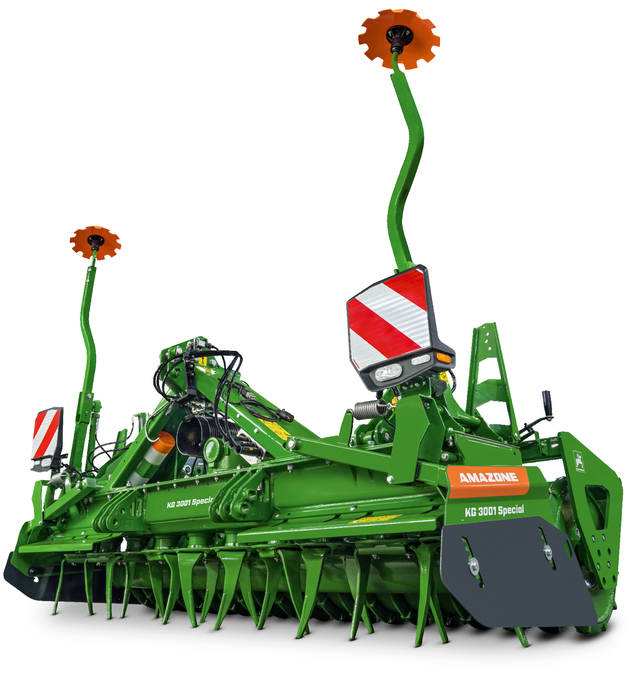 The folding KG 02-2 rotary cultivator in working widths of 4 m, 5 m or 6 m is particularly impressive with its high work rates. The Cultimix system provides the rotary cultivator with a high clearance and unbeatable robustness.