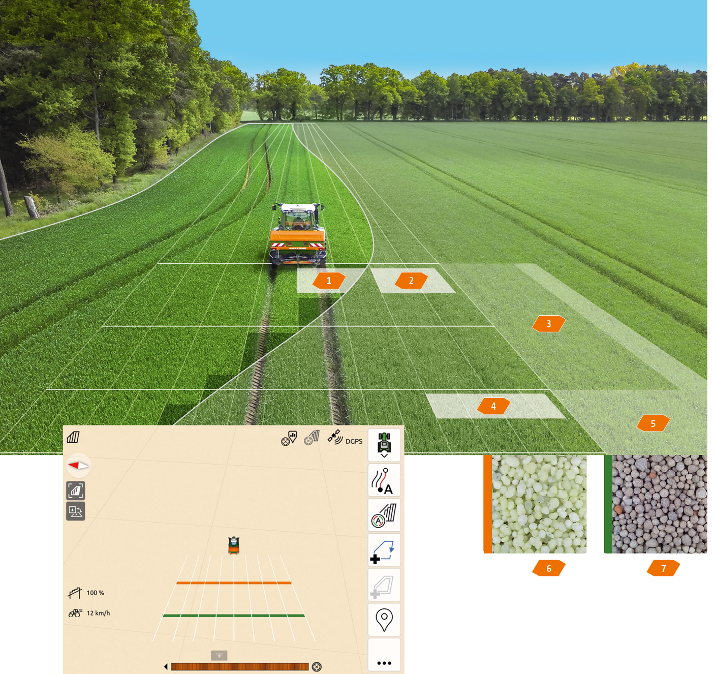 With GPS-Switch, AMAZONE offers GPS-based, fully automatic, part-width section control for all AMAZONE operator terminals and ISOBUS-compatible fertiliser spreaders, crop protection sprayers or seed drills.