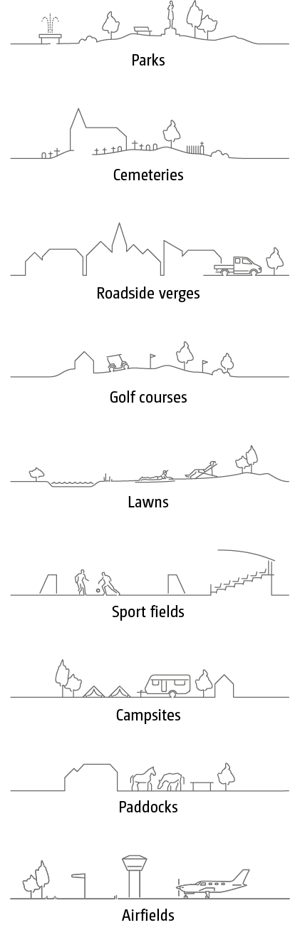 The large rotor diameter and tolerance of foreign objects mean that they are perfect for the extensive maintenance of large areas of grass. The combination of reversible mowing blades with 2 cutting edges and sharpened wing blades offers a perfect balance of low wear and excellent mowing and collecting performance. The cuttings are finely shredded by the blades. This reduces composting time.