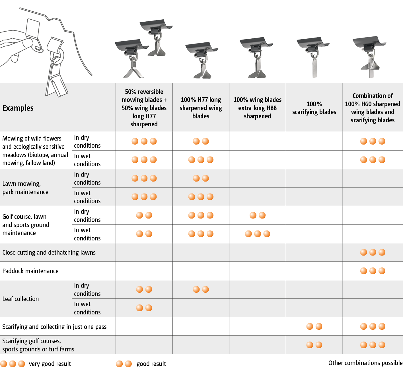 The long-life qualities of the blades result in little wear. In addition, the blade system is resistant to foreign obstacles because each blade is independently suspended.