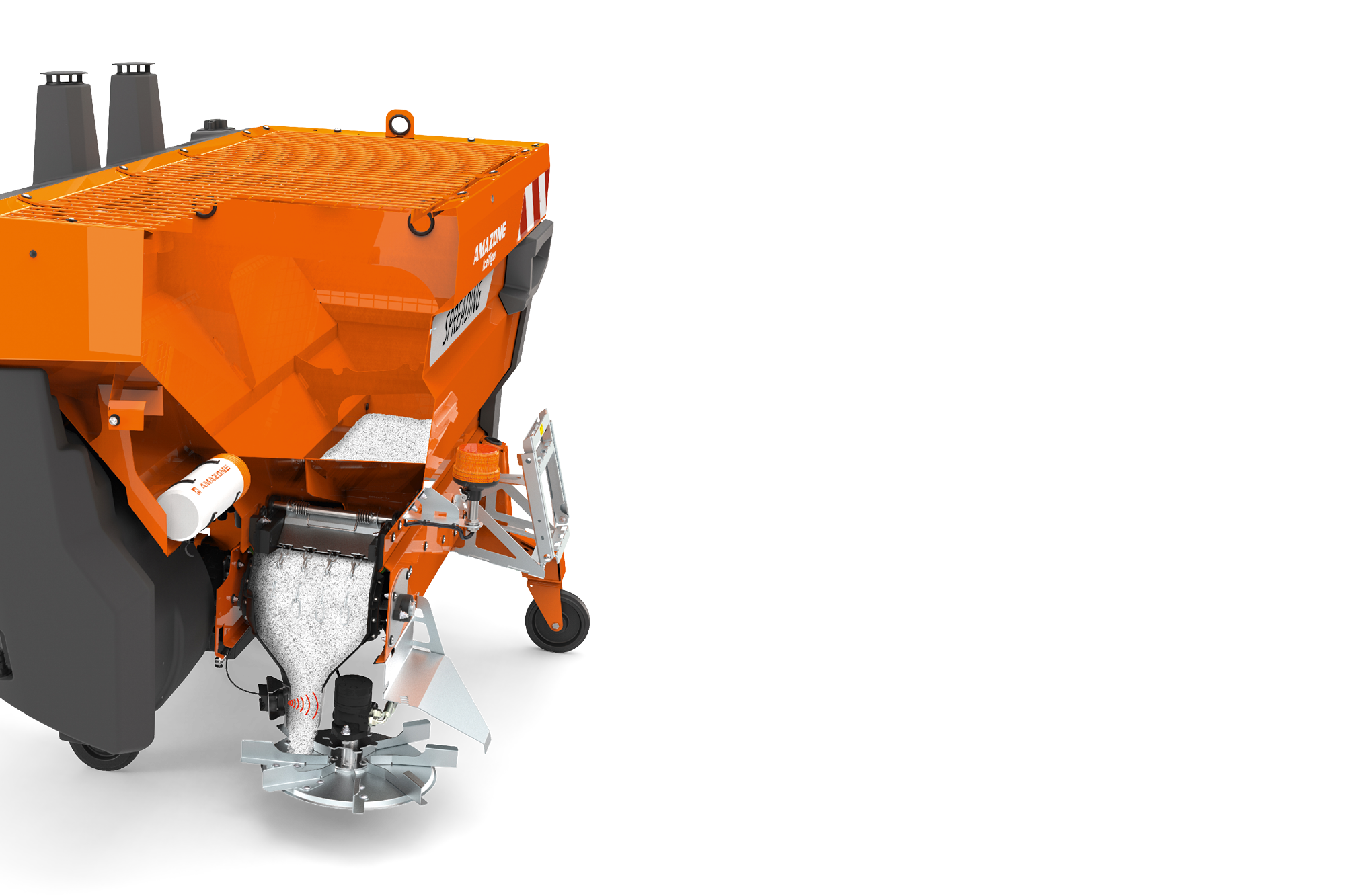 The FlowCheck radar sensor for the ISOBUS-controlled IceTiger, with a hopper capacity of 1,000 litres or more, enables blockages to be detected at an early stage. A message on the ISOBUS terminal immediately informs the user if a blockage has occurred e.g. due to the use of viscous, pre-wetted salt.