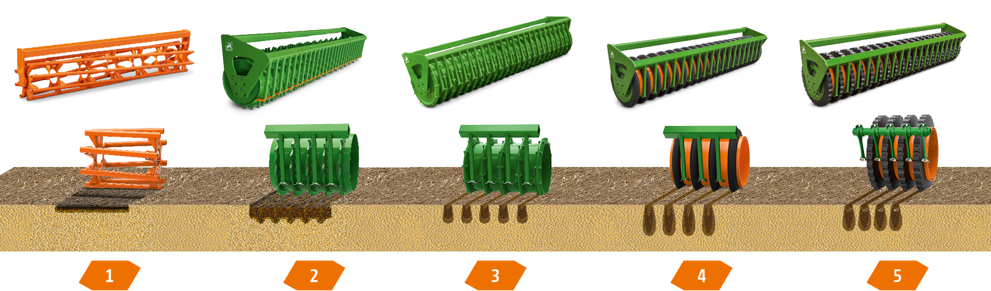 With a variety of packer roller available, it is possible to specify a complete combination of soil tillage tool and drill that are perfectly matched to the prevailing soil conditions.