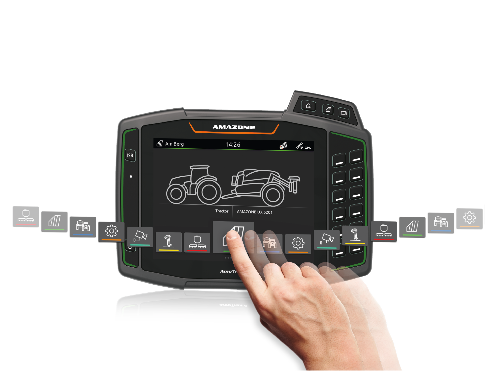 With GPS-Switch, AMAZONE offers GPS-based, fully automatic, part-width section control for all AMAZONE operator terminals and ISOBUS-compatible fertiliser spreaders, crop protection sprayers or seed drills.