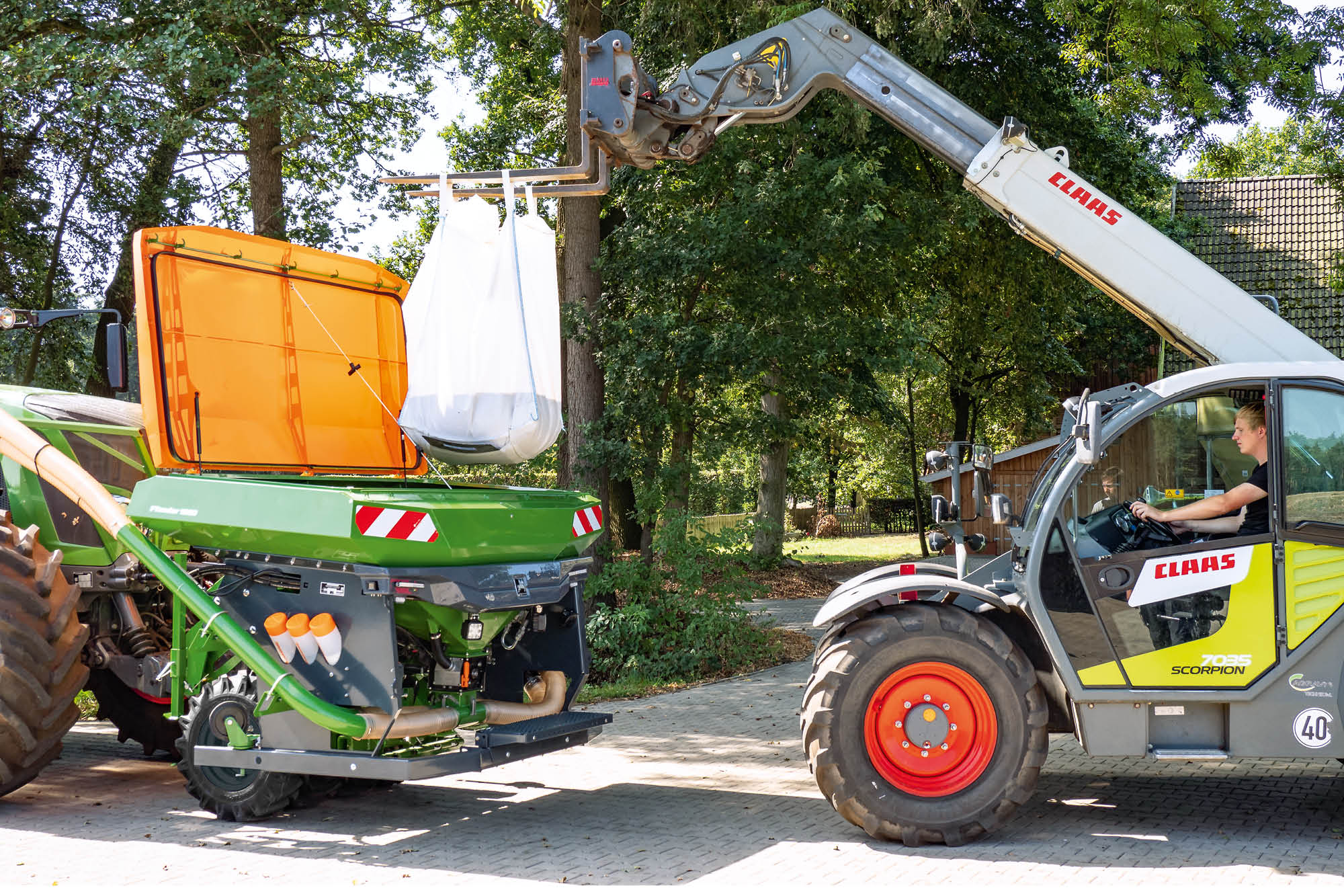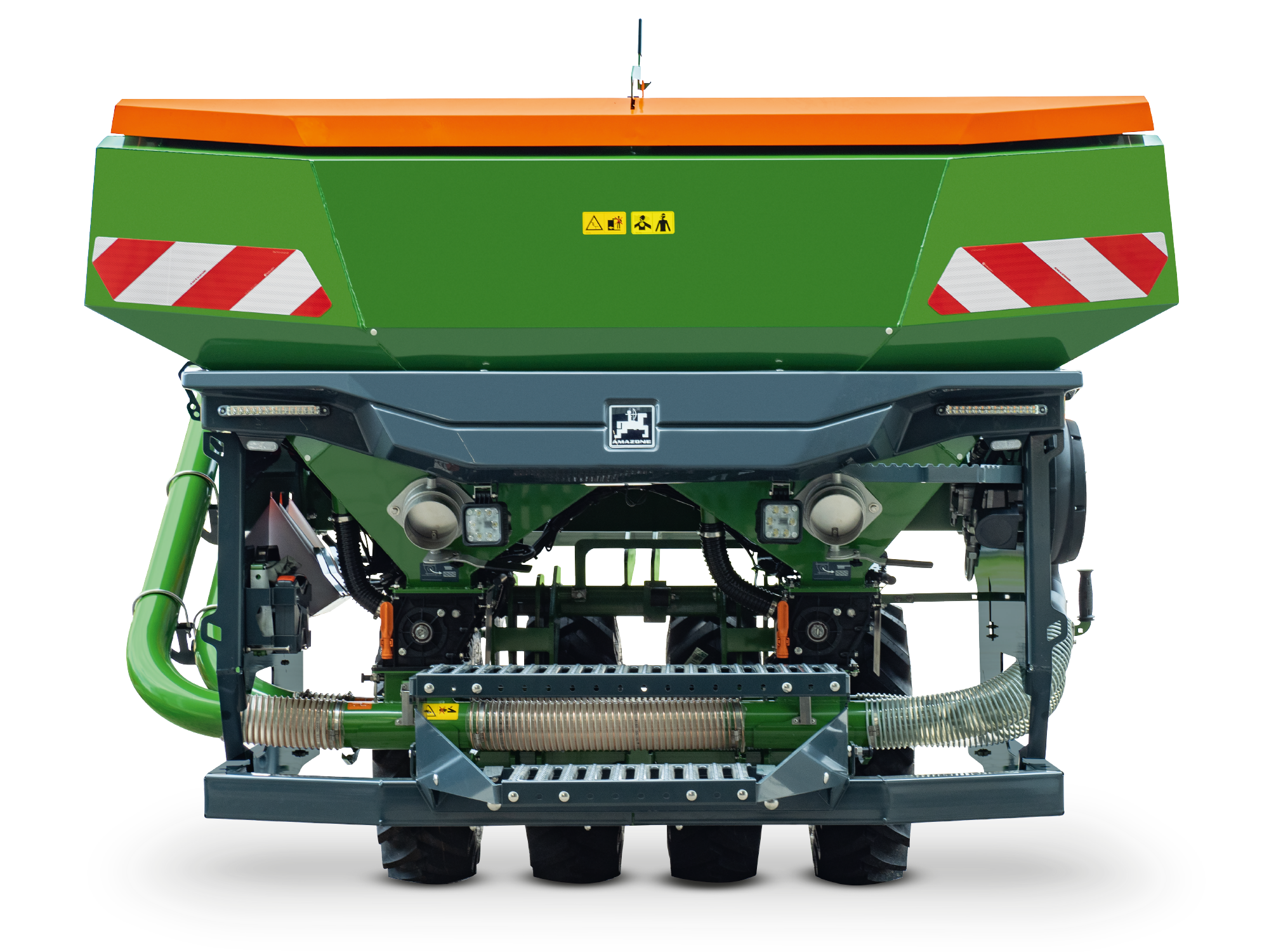 AMAZONE offers a universal, front-mounted hopper for multi-functional use in the shape of the FTender with a capacity of 1,600 l or 2,200 l. The single tipped, mounted front hopper has an aerodynamic shape and allows for good forward visibility. This is useful when driving on roads as well as during turning in the field. The advantage of the pressurised hopper lies in higher transfer rates, which is why its use is particularly recommended for higher rates of fertiliser. The FTender is also available with a split hopper for even more permutations whilst sowing.