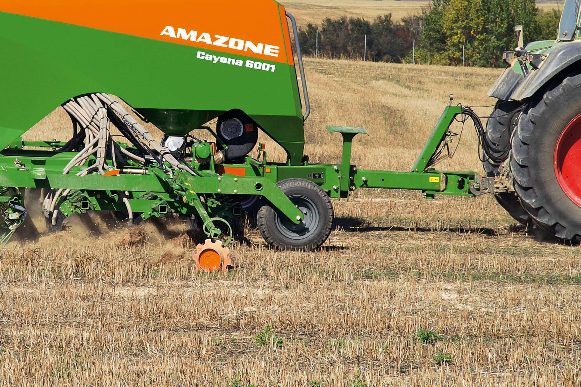 The working depth of the cutting discs can easily be adjusted by swivelling the stops. In addition, the lift mechanism is directly coupled to the chassis, so that it lifts automatically with the implement.