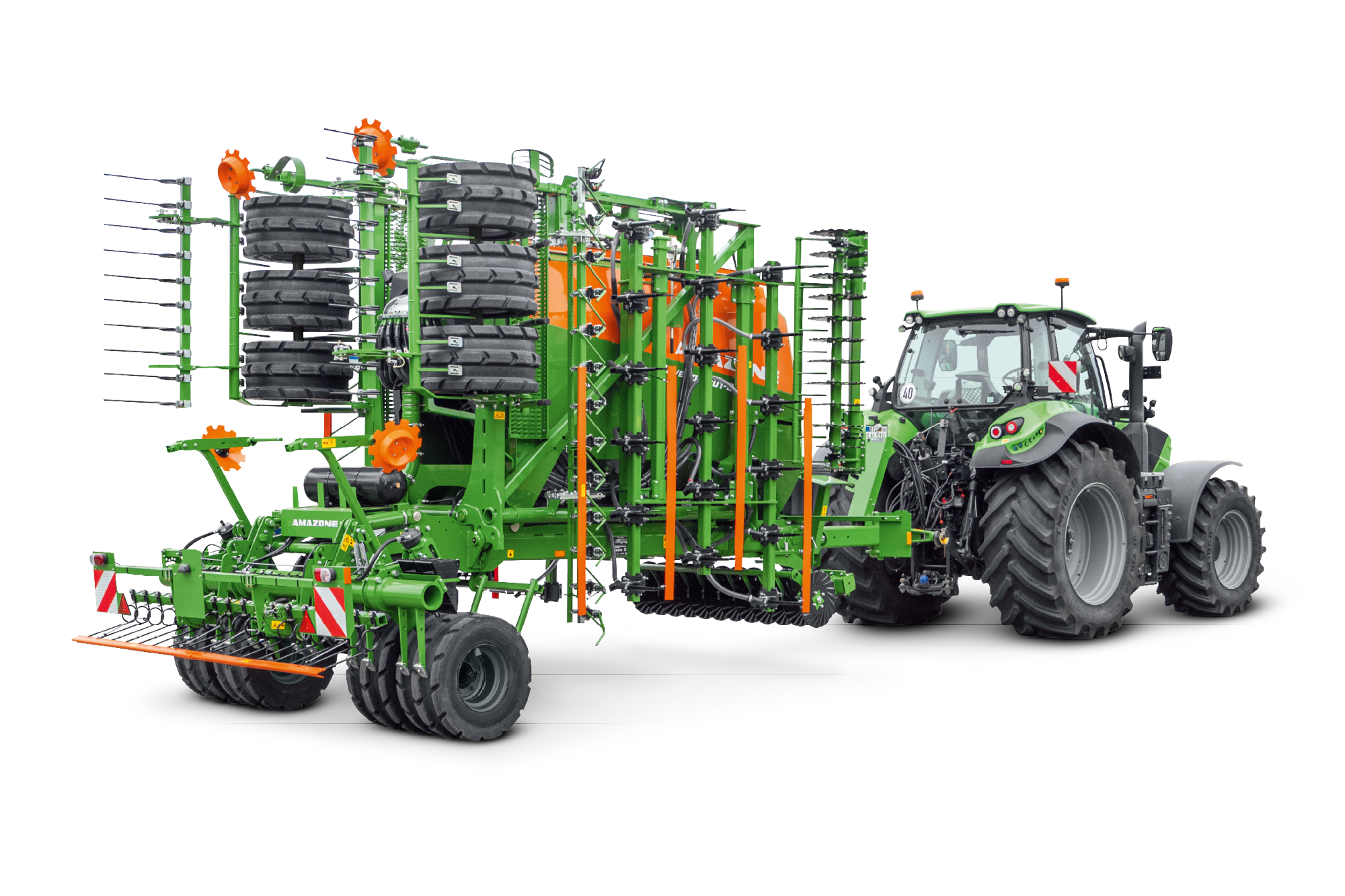 The Cayena can be folded into the transport position in no time at all. A transport width of 3 m is possible on the road, thanks to its narrow hopper. It can easily be transported at speeds of up to 40 km/h when equipped with the optional compressed air braking system.