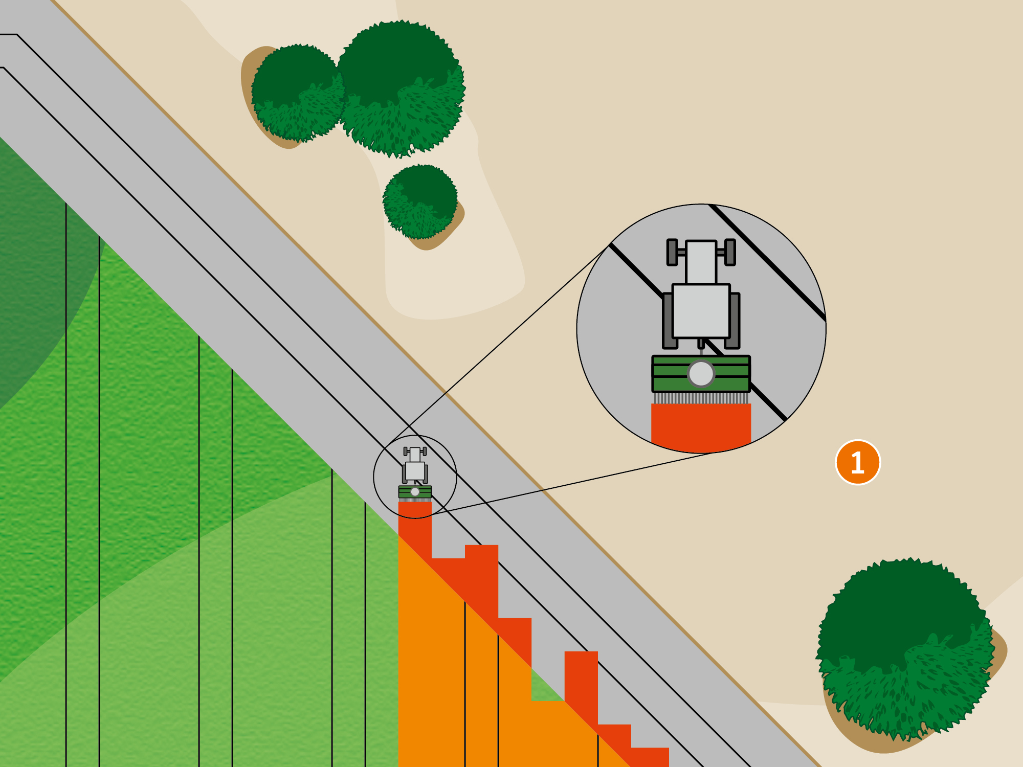 If the operating terminal has Section Control, such as GPS-Switch part-width section control from AMAZONE, the part-width sections can be automatically switched on and off in relation to the GPS position.