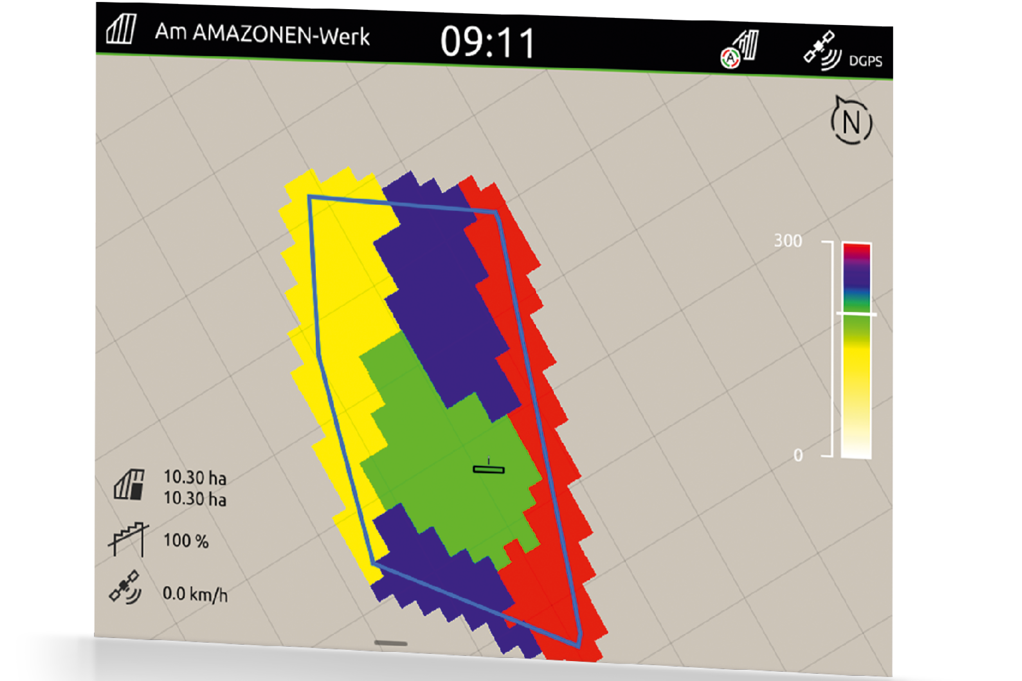 With GPS-Switch, AMAZONE offers GPS-based, fully automatic, part-width section control for all AMAZONE operator terminals and ISOBUS-compatible fertiliser spreaders, crop protection sprayers or seed drills.