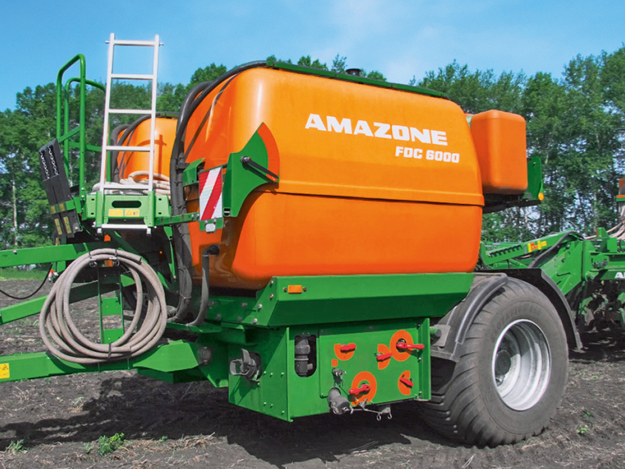 The FDC has, in addition to the fertiliser tanks, two 300 l fresh water tanks, so that the entire Cart, including the pump and hoses, can be cleaned intermittently by flushing with water. All the tanks can be safely accessed from a working platform and have a large tank opening.