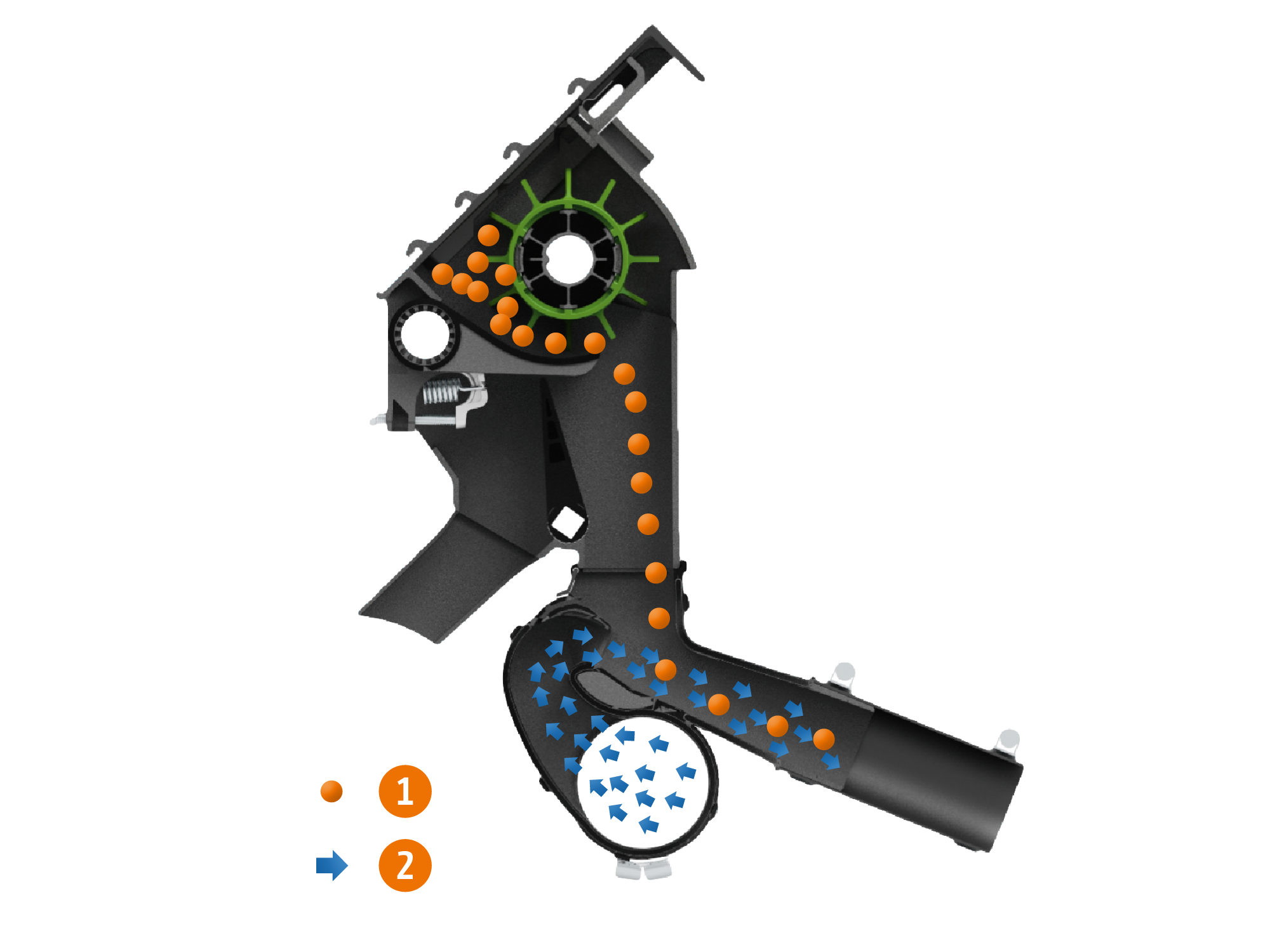 FerTeC Twin double disc fertiliser coulter with leaf spring overload protection | 1) 380 mm 2) 3–12 cm