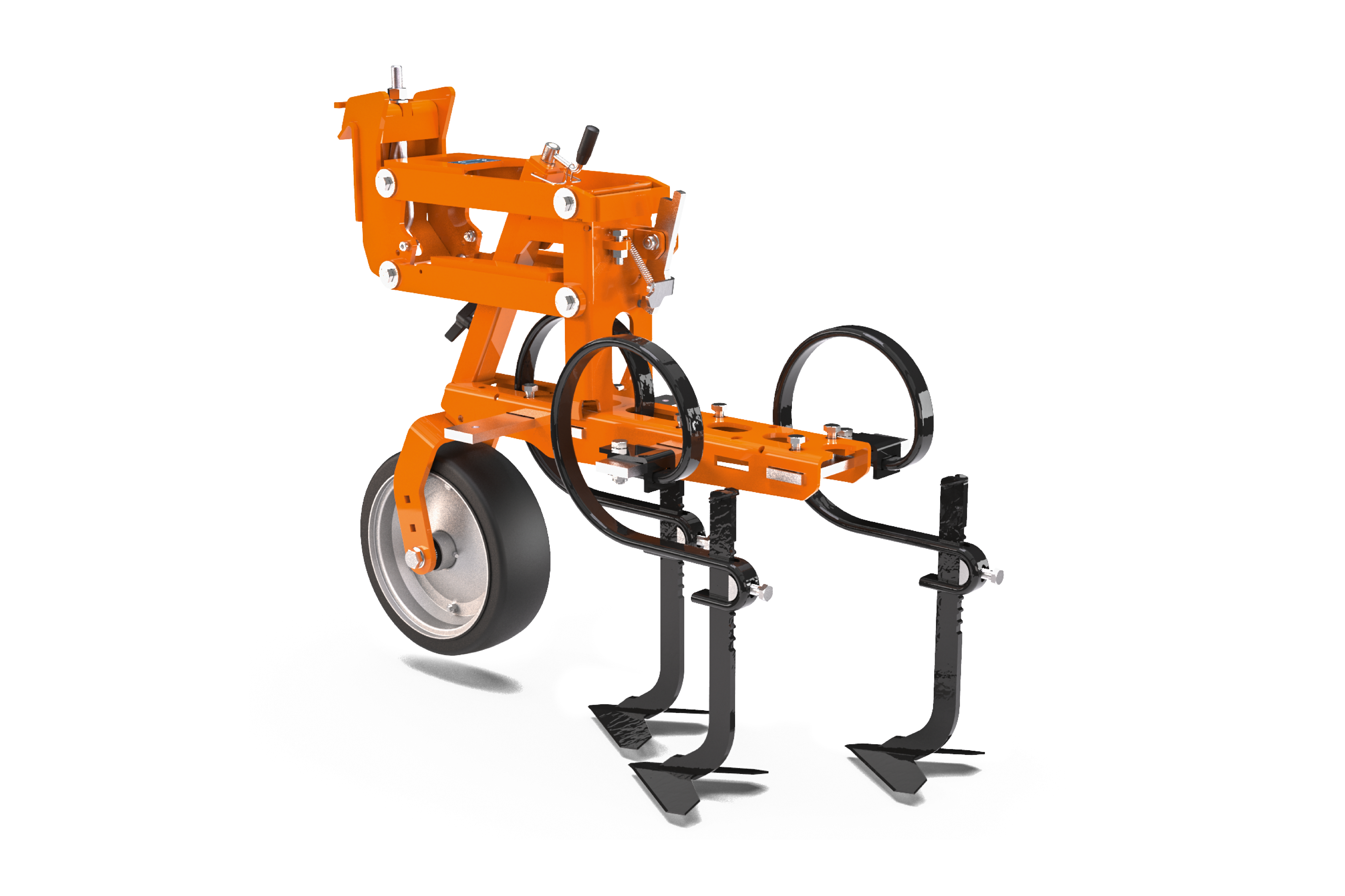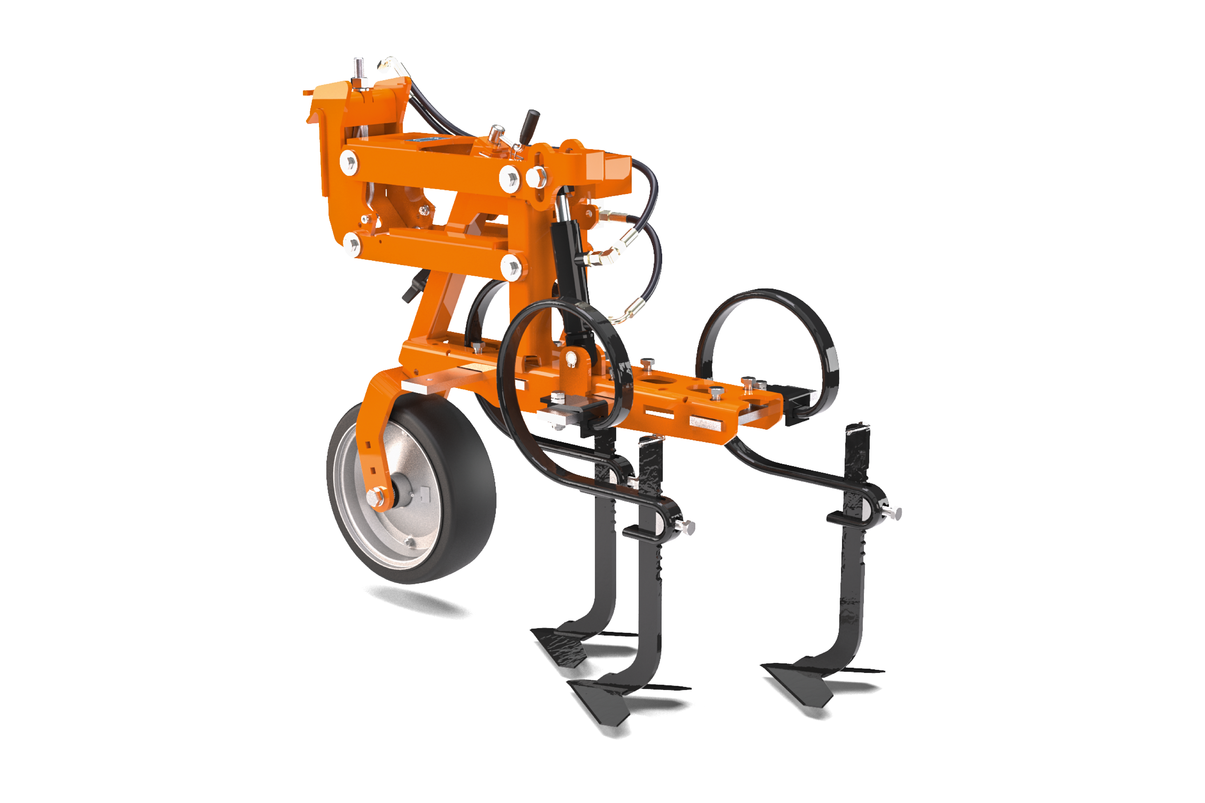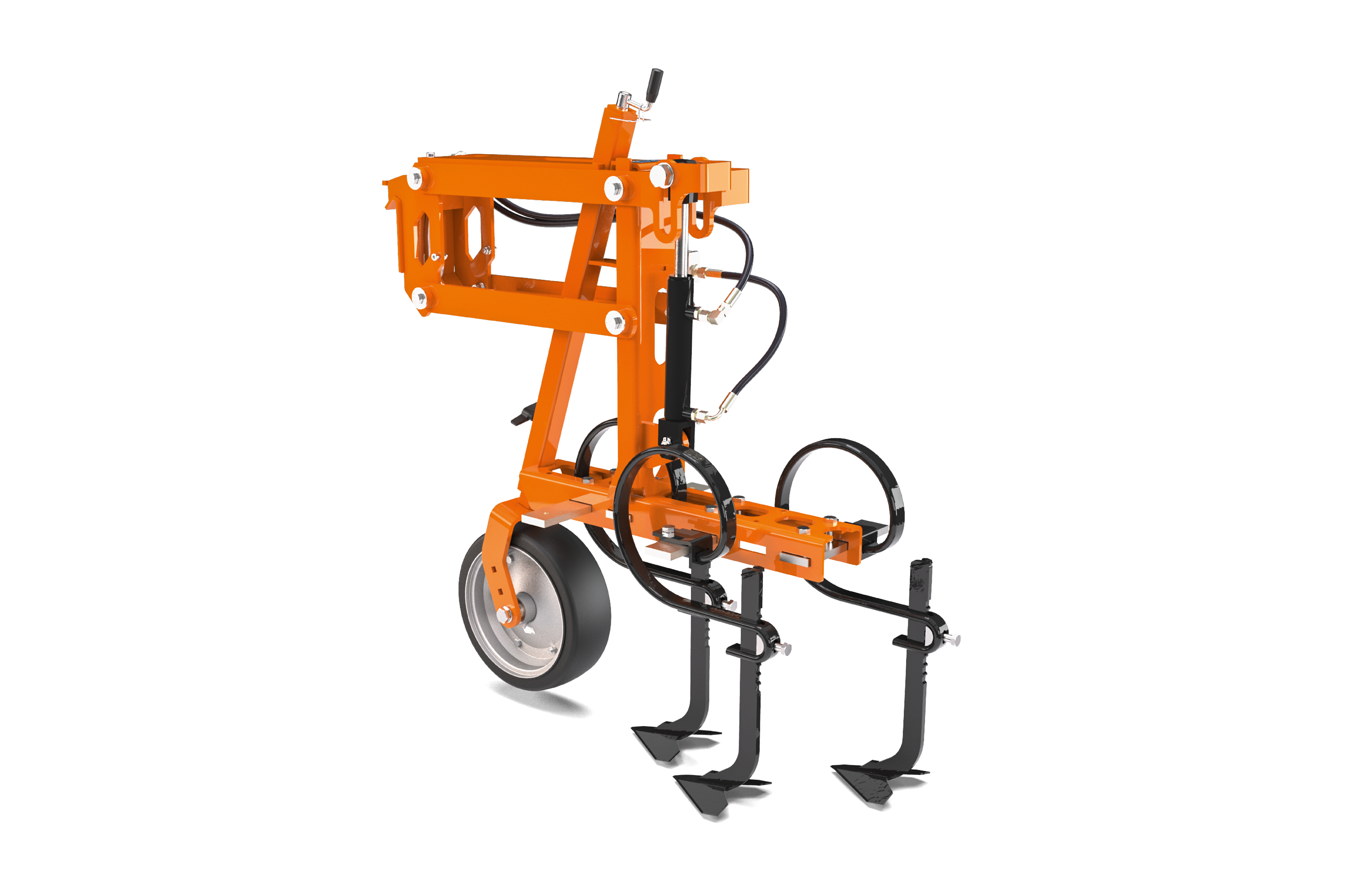 The parallelogram is the heart of the hoe. Each parallelogram is individually suspended, so that it guides the hoeing tools precisely between the crop rows. The hoe blades control weeds effectively, while the hoe protection discs prevent small crop plants from being buried in the row. The finger hoes in turn remove weeds from the base of the row – without damaging the crop. The following harrows comb out the weeds and remove soil from the roots. With a very high frame clearance and the option of lifting individual parallelograms, the Venterra is perfect for mechanical weed control in any crop!
