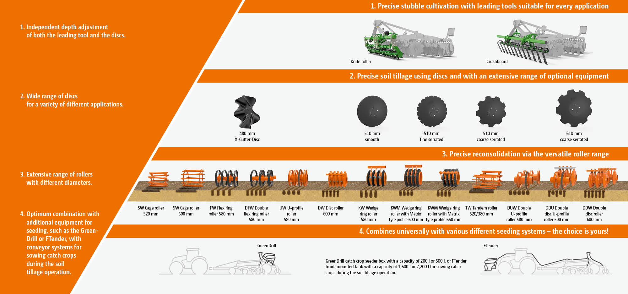 - Fast working speeds and large-scale coverage Lower wearing costs and maintenance intervals Very shallow, full-surface cultivation