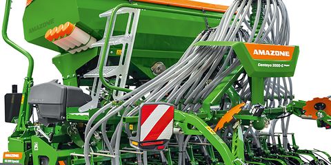 AMAZONE is extending the range of pneumatic harrow-mounted seed drill with the new Centaya-C. The special feature of the sowing combination is the new 2,000 l twin chamber hopper. This makes it possible to apply several materials in a single pass. The new Centaya-C Super is available in working widths of 3, 3.5 and 4 m.